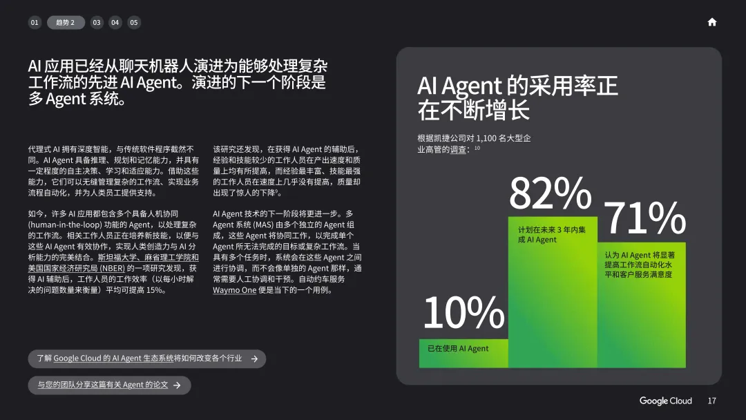 正从单一任务向多Agent系统演进,协同处理复杂工作流。