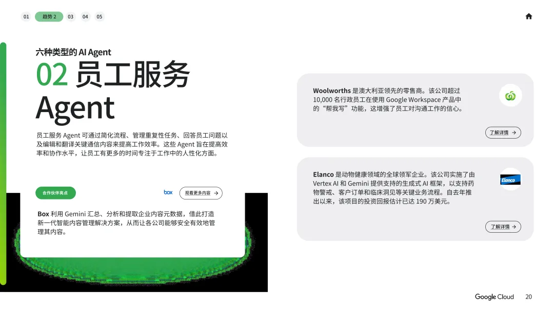 六大类型Agent:客户服务、员工服务、创意服务、数据服务、代码服务、安全服务。