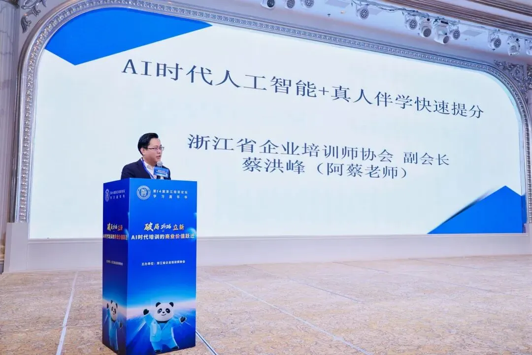 阿蔡老师今天作为浙江省企业培训师协会副会长参加了“破局2026立新 AI时代培训的商业价值跃迁”第14届浙江培训论坛学习嘉年华,在大会上分享了“AI时代人工智能+真人伴学快速提分”这个话题,当场吸粉50多个人。