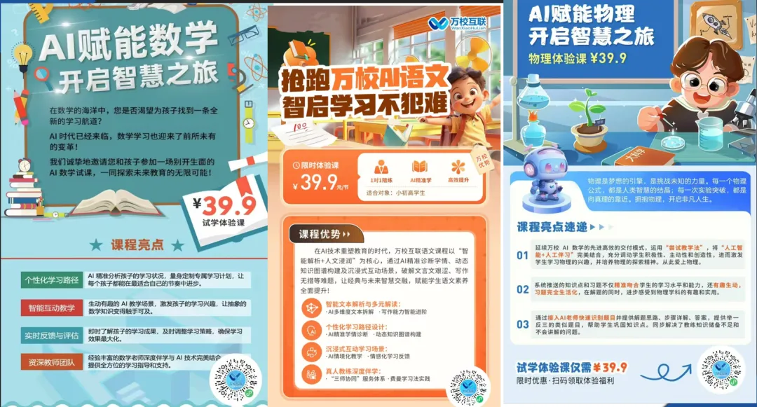 阿蔡老师做的是:转发朋友圈免费体验(引流)+AI真人一对一小初高全科提分(留客)+家庭教育(锁客)