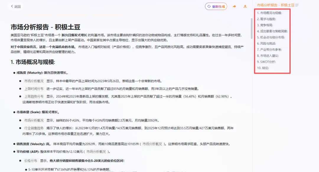 可以得出一份如下报告,从9个维度帮助快速了解市场。