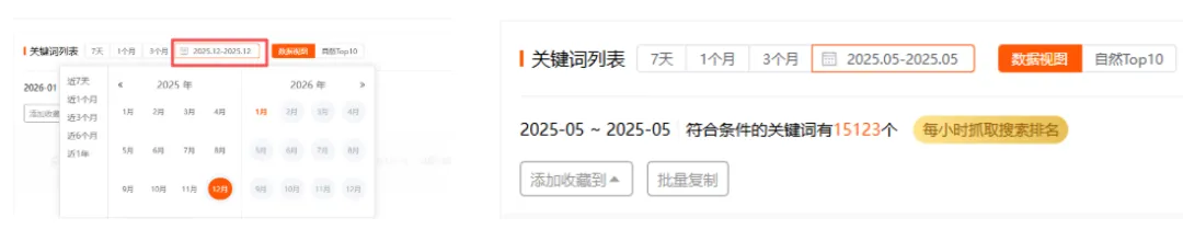 时间这里我选最具代表性的12月和5月,把关键词和词频数据下载下来