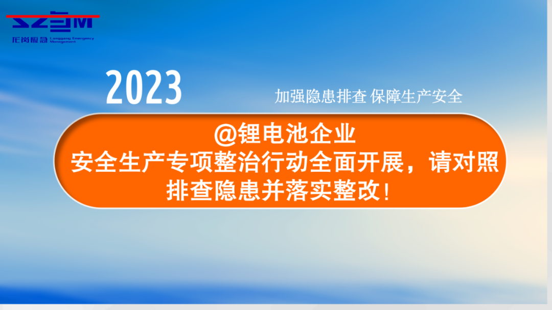 @锂电池企业,即日起安全生产专项整治行动全面开展,请对照排查隐患并落实整改!