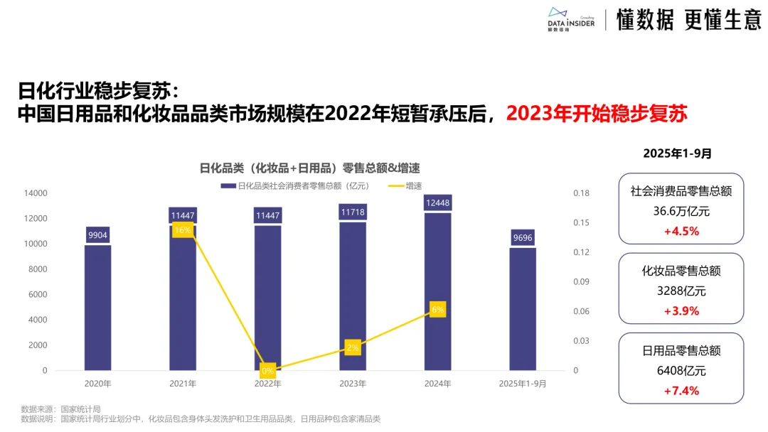 导读:2025 年消费市场呈现多元升级态势,日化与厨具行业均迎来显著变革。日化行业在 2023 年稳步复苏后持续增长,美妆、个护、家清三大细分领域齐头并进,国货品牌凭借本土化创新与高性价比,市占率逐步超越外资品牌。线上渠道成为核心销售阵地,内容电商增速迅猛,场景化体验与精准功效成为产品创新核心。厨具行业则受 “邪修美食” 热潮驱动,向功能复合、操作极简方向迭代。微波炉、空气炸锅等单品因适配懒人需求走红,18-29 岁都市青年与学生党成为消费主力,注重一机多用与空间适配性。社媒营销成为品牌发力重点,小红书商业投放增长显著,抖音侧重情景化植入,美食与家居类达人种草效果突出。两大行业均呈现人群细分、产品创新与渠道适配的协同进化趋势,功能升级与情绪价值融合成为市场竞争的关键抓手,满足消费者高效、个性化的生活需求。