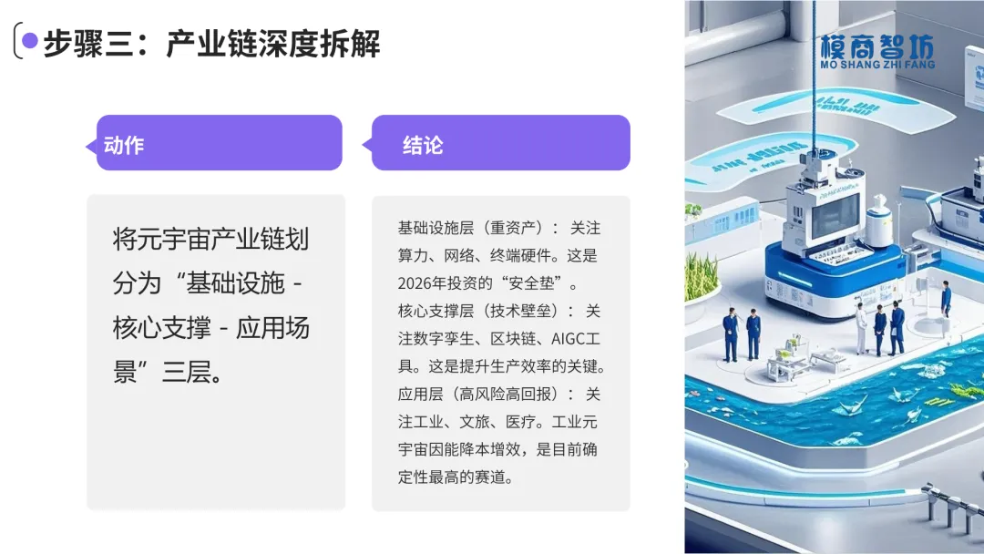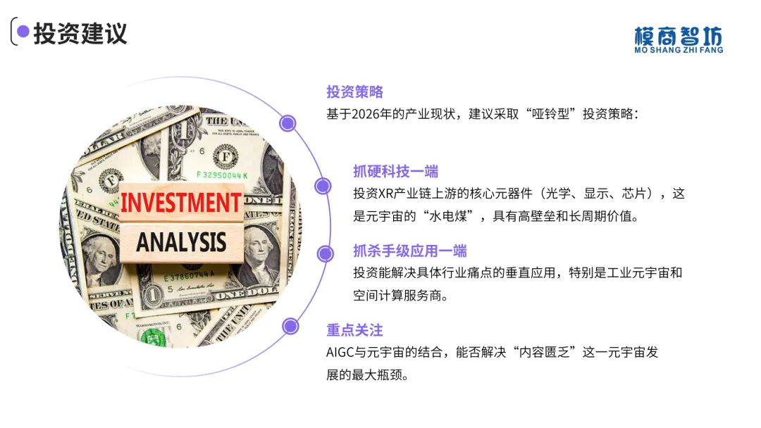 导读:元宇宙已从概念炒作迈入标准建设与垂直深耕阶段。我国政策层面推进标准化体系建设,明确其为数字经济与实体经济融合的高级形态,长三角、珠三角形成核心产业集群。麦肯锡预测,到 2030 年元宇宙潜在经济影响达 5 万亿美元,电商、虚拟学习、广告为核心赛道。技术层面以 “BIGANT” 模型为支撑,空间计算与算力网络成为 2026 年投资热点。资本流向从早期硬件、游戏转向基础设施、垂直应用及 AIGC 领域,国产化替代芯片、光学模组及工业元宇宙等赛道机会凸显。Meta、英伟达等巨头布局各有侧重,国内企业在 XR 设备、虚拟人领域表现突出。投资应采取 “哑铃型” 策略,聚焦硬科技与垂直应用。需警惕技术成熟度、政策合规及硬件普及率等风险。报告核心结论强调,元宇宙已成为下一代互联网生产力工具,投资需回归硬科技赋能实体经济本质,避开纯概念炒作项目。