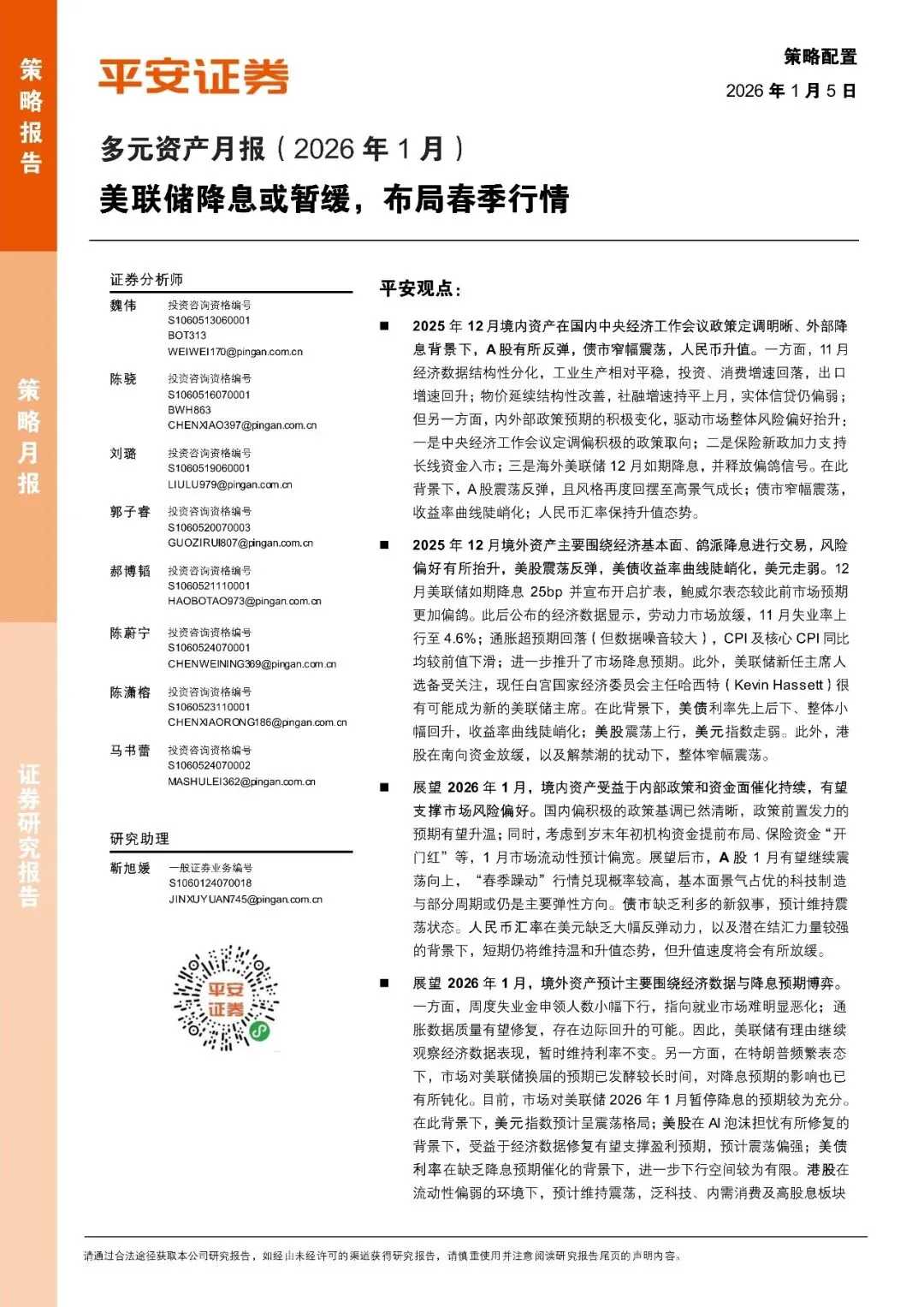 多元资产月报(2026年1月):美联储降息或暂缓,布局春季行情-260105-平安证券-23页