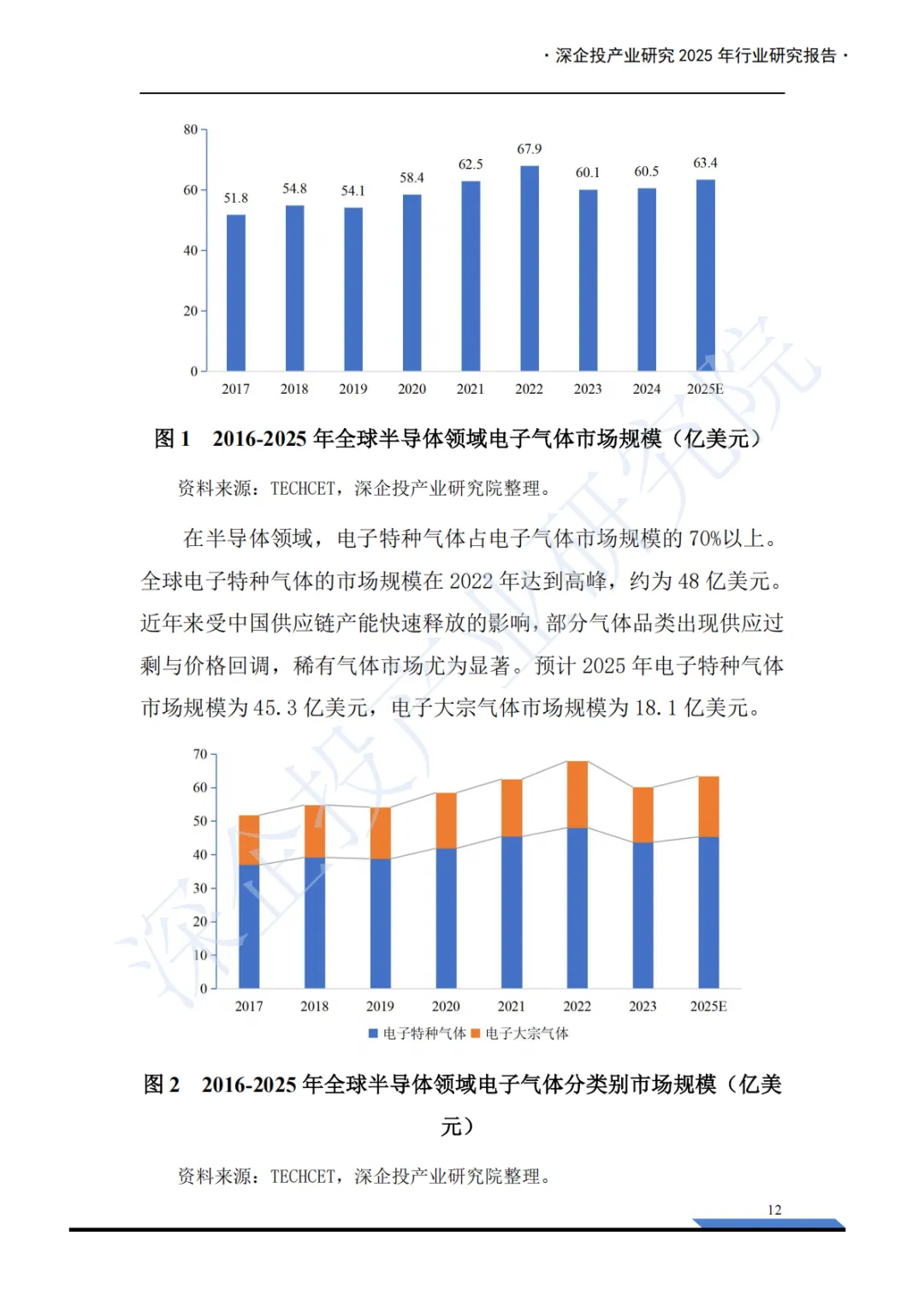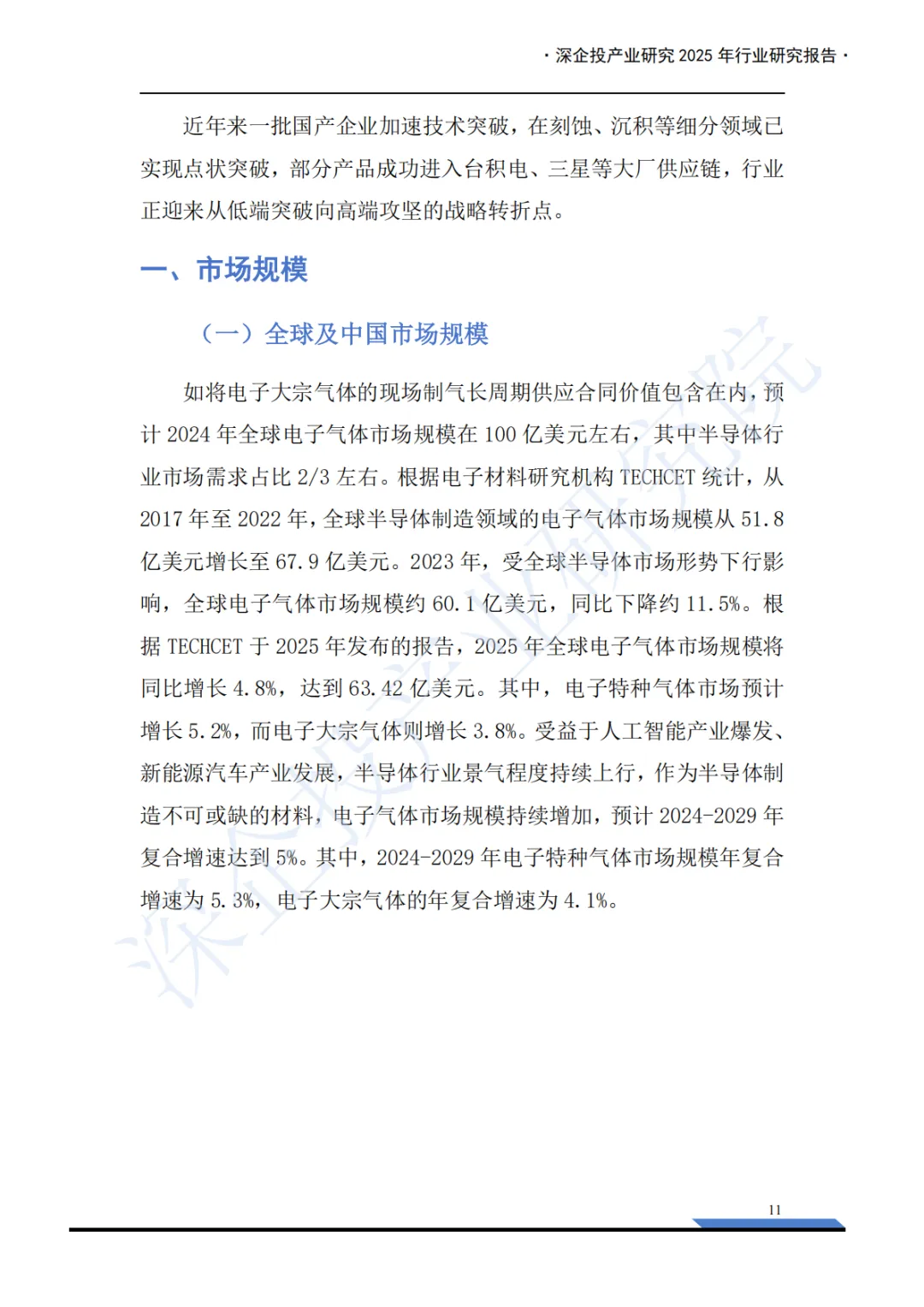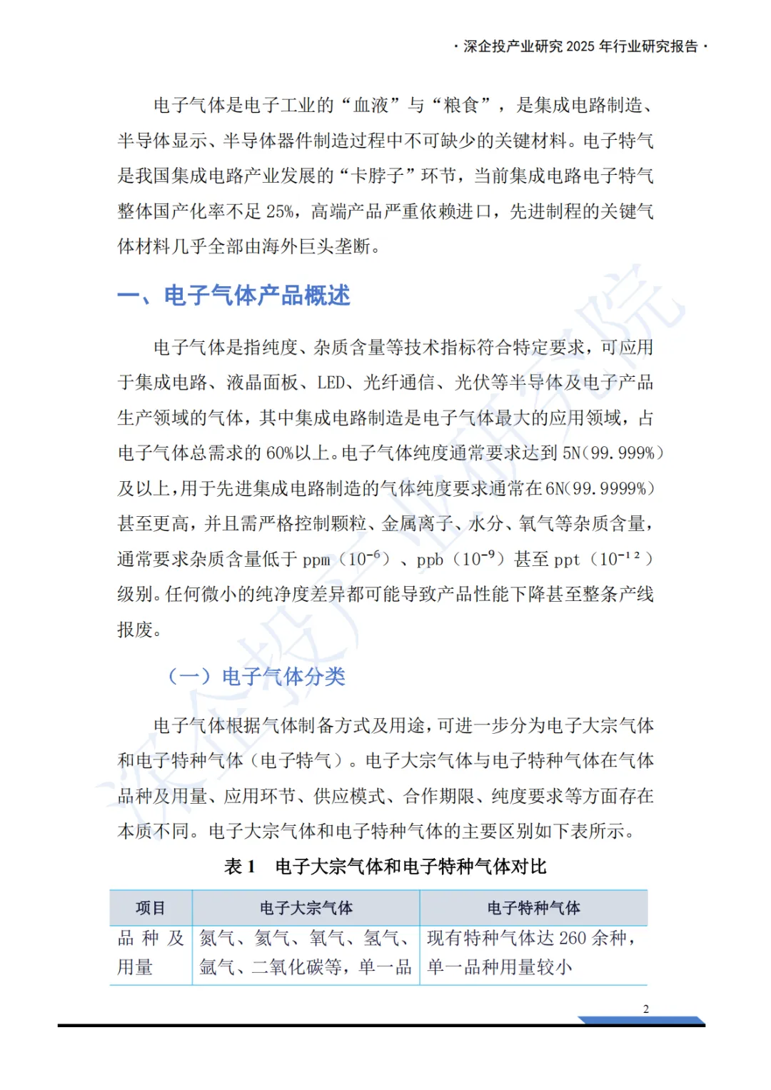 这份《2025年电子特气产业深度研究报告》内容非常详实,涵盖了电子特气产业的概述、市场格局和重点产品分析三大板块,并附有丰富的图表数据和企业列表。报告核心聚焦于中国电子特气产业的现状、挑战与机遇。