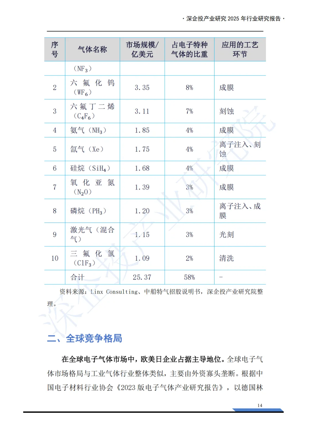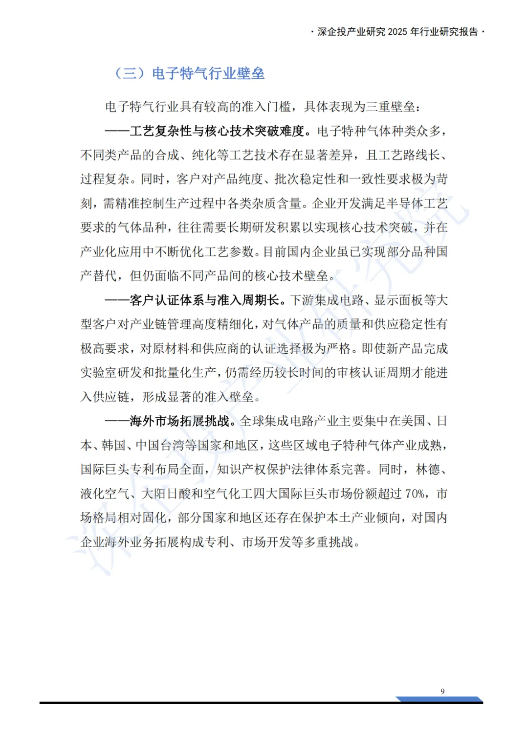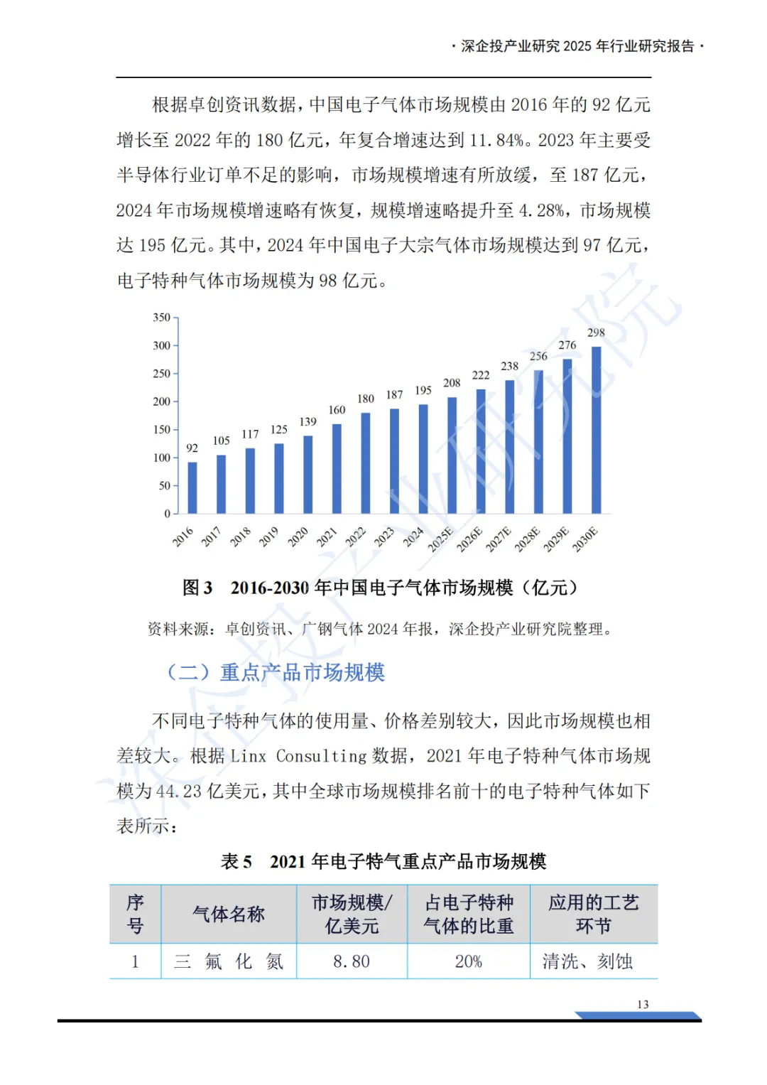 这份《2025年电子特气产业深度研究报告》内容非常详实,涵盖了电子特气产业的概述、市场格局和重点产品分析三大板块,并附有丰富的图表数据和企业列表。报告核心聚焦于中国电子特气产业的现状、挑战与机遇。