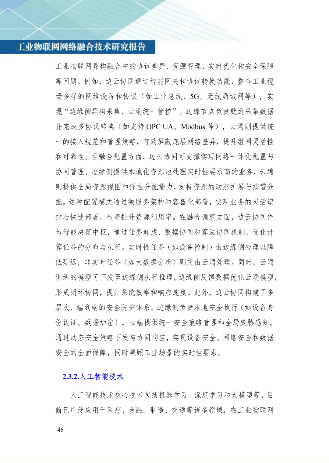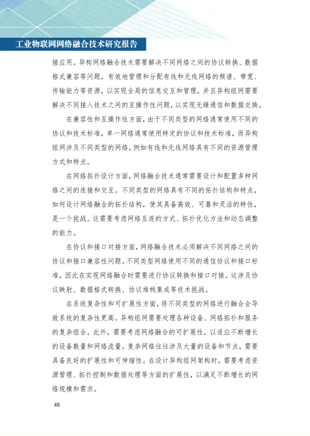 报告立足全球工业体系向规模化、网络化、智能化变革的背景,指出工业现场级网络存在多标准并存、协议异构、数据流通壁垒、资源冗余及运维复杂等痛点,难以释放工业系统整体效能;同时强调工业物联网技术演进并非孤立迭代,而是与人工智能、数字孪生、绿色低碳等新兴技术深度耦合——AI与网络融合形成双向增益,数字孪生强化融合需求与价值,双碳目标倒逼数据互通与资源协同,共同推动工业物联网向一体化、智能化、可持续发展演进。报告也直面当前融合技术的五大挑战:网络异构性突出、数据互通受阻、技术路径分散、安全挑战加剧、国际竞争紧迫,由此明确核心目标是构建工业物联网网络融合技术框架,填补系统性研究空白。