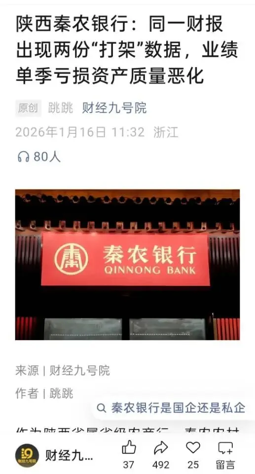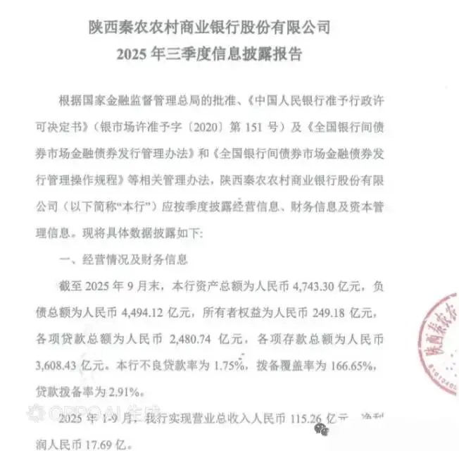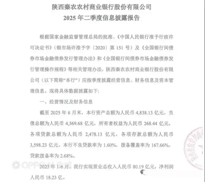 作为陕西省属省级农商行,秦农银行本应是区域金融稳定的“压舱石”,但2025年以来暴露的系列问题,却让市场充满疑虑。两份加盖公章、董事长与行长签名的半年报数据悬殊,近50亿营收差额成谜,叠加单季亏损、资产质量恶化,这家银行正遭遇成立以来最严峻的信任拷问。