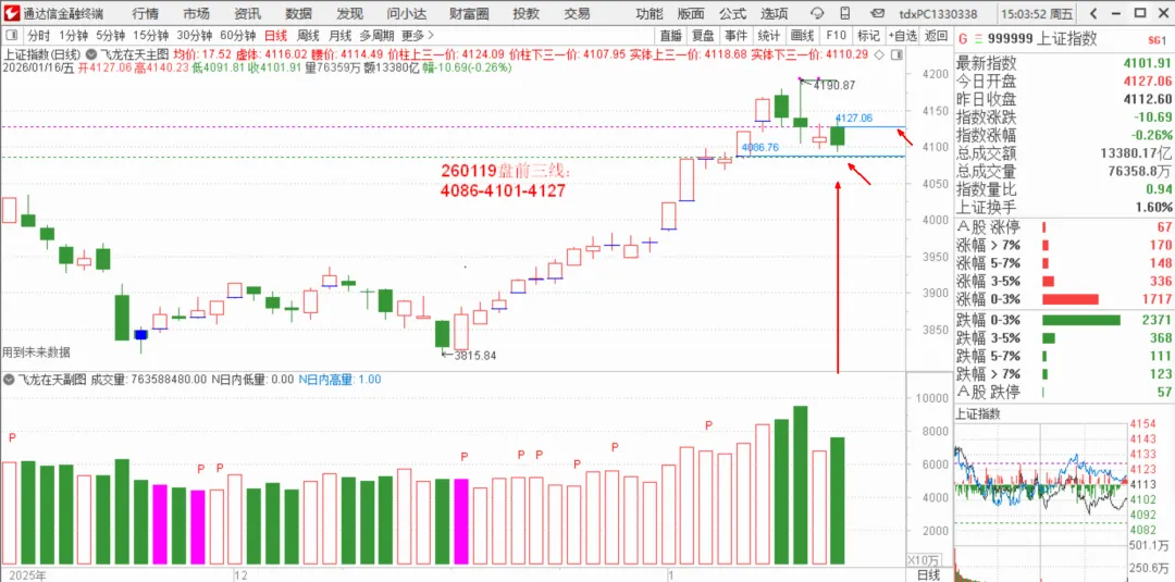 0116指数高开低走,区间内震荡,市场情绪达到冰点!