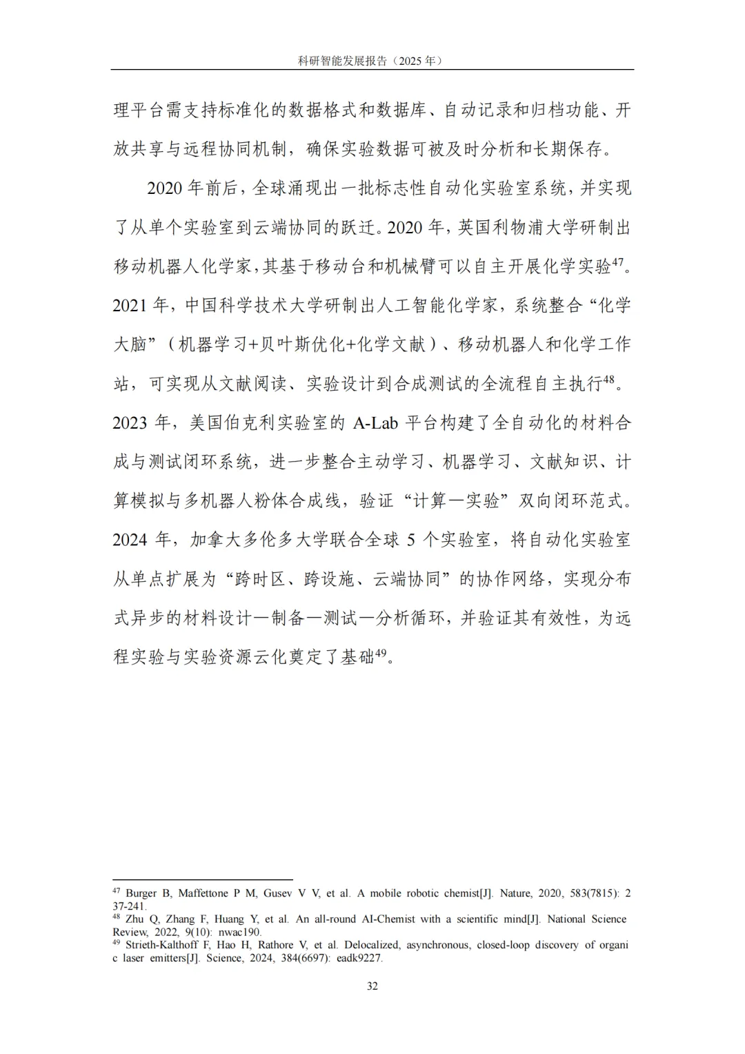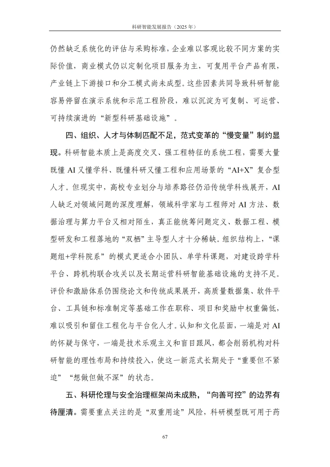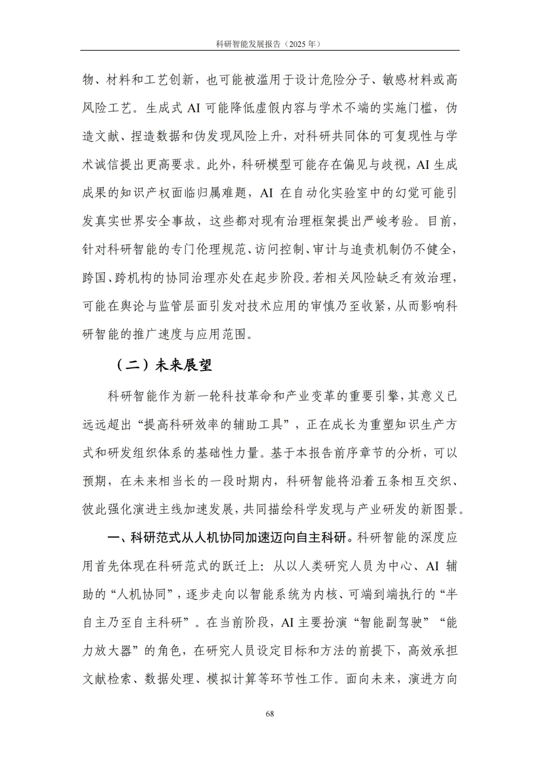 5. 挑战及展望:跨越规模化应用鸿沟,开启“科研资源即服务”新时代。科研智能从试点走向规模化应用,仍面临系统性挑战,包括高质量数据与标准供给不足、模型外推与可解释性欠缺、工程化集成与评测体系不完善、跨学科协作机制与可信治理框架不健全等。展望未来,科研智能将持续向更高水平的自主化与平台化演进,有望形成 “科研资源即服务(RaaS)” 的新型供给模式,让算力、数据、模型、实验设施等资源以按需、弹性、标准化的方式开放共享,进一步激发全社会创新活力,催生多类规模化应用赛道。