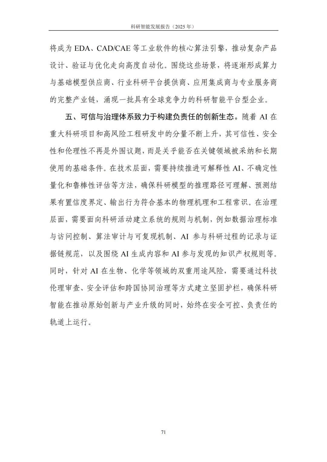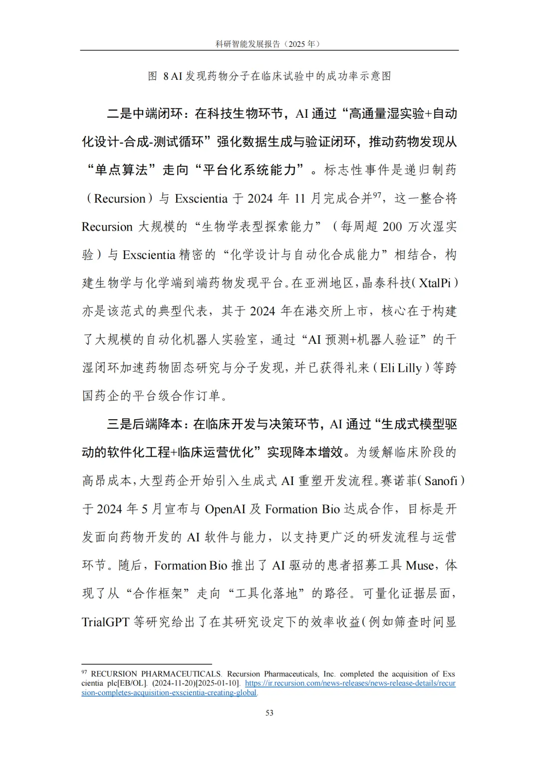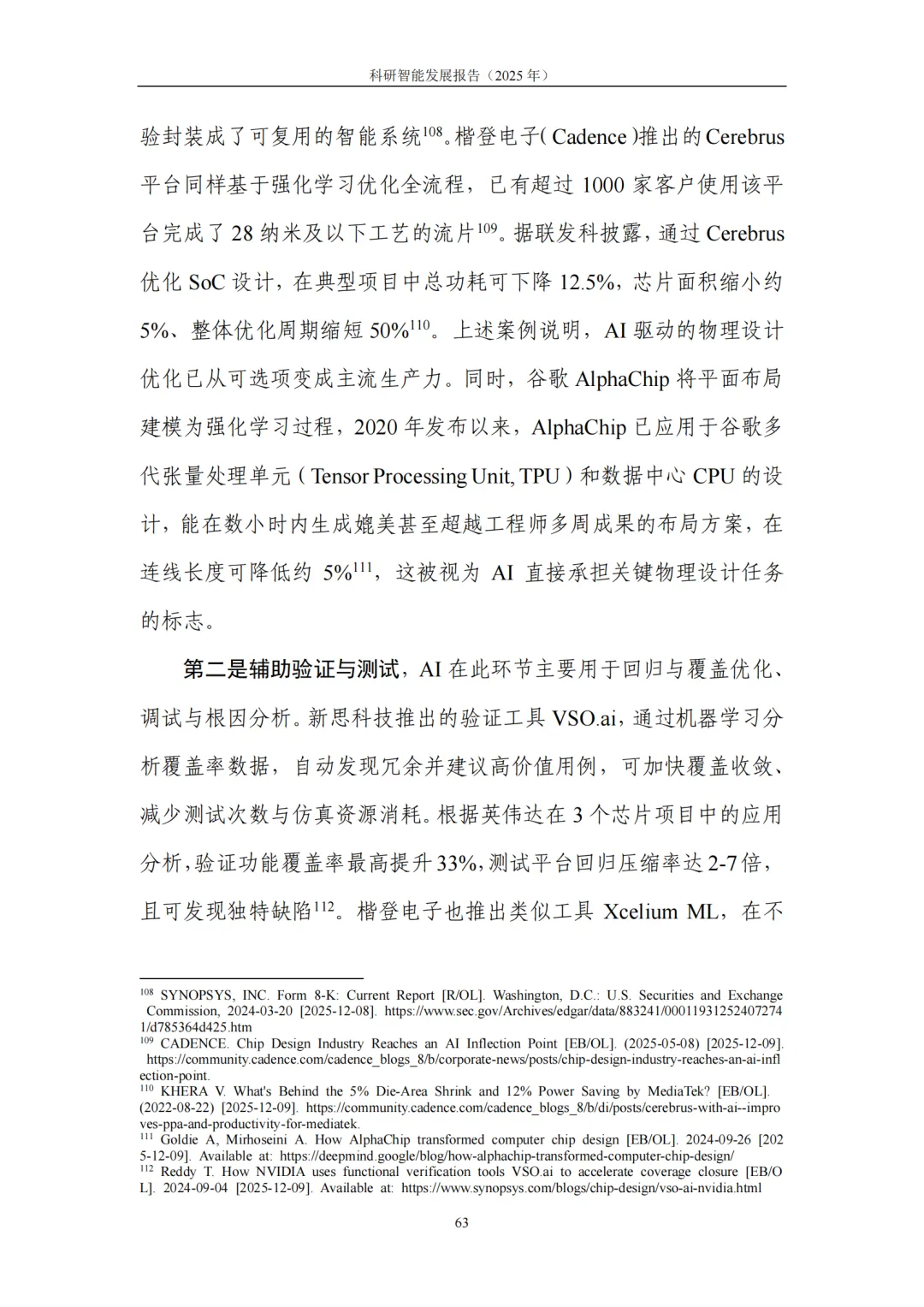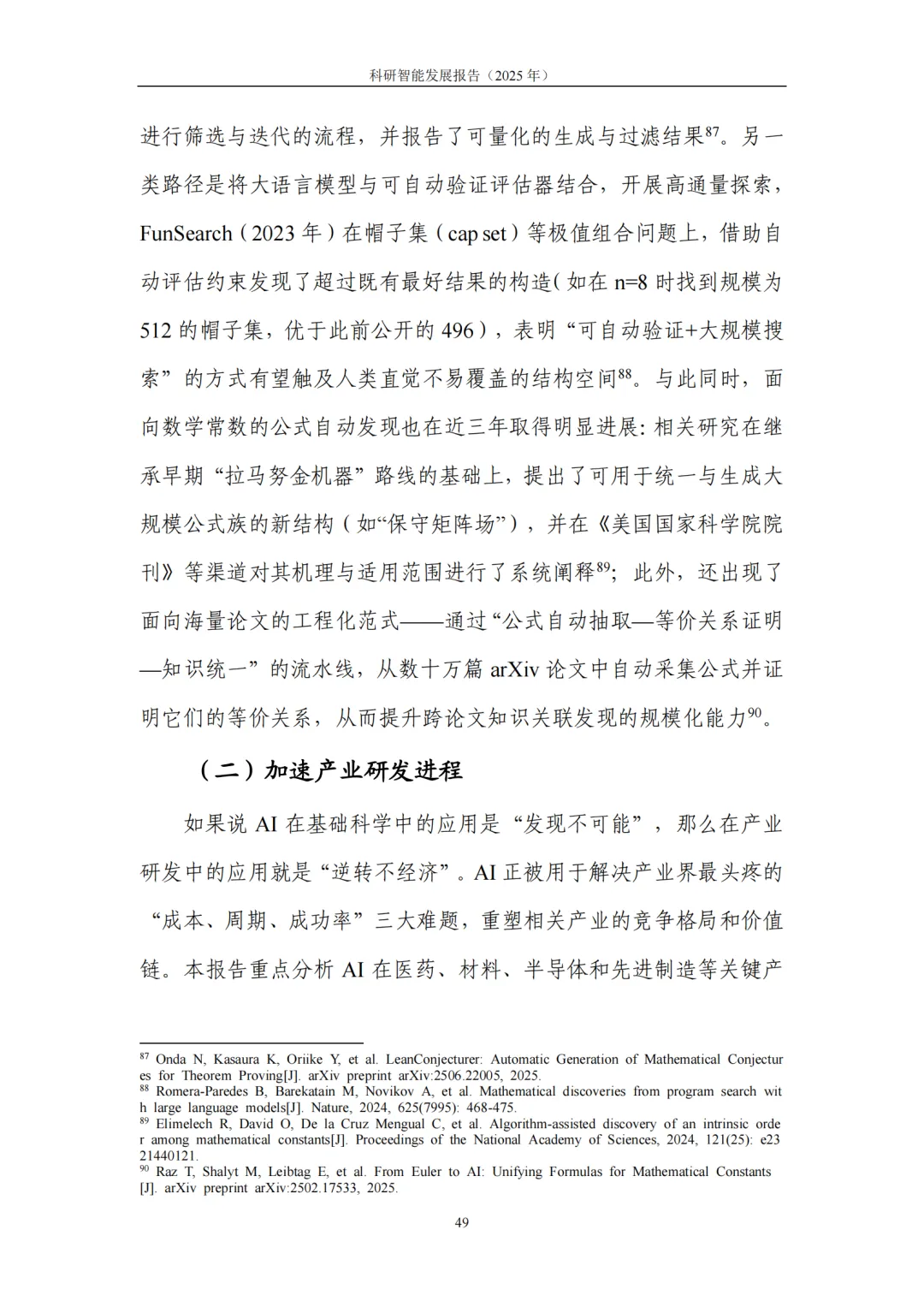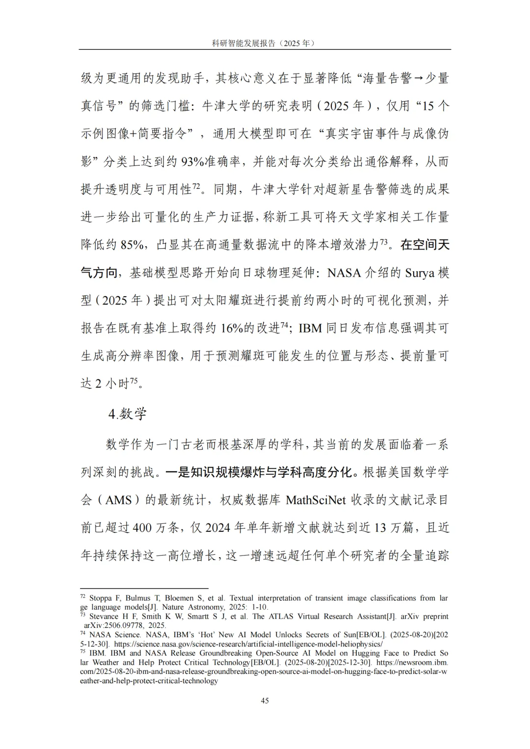 4. 典型应用:基础科学提效、产业研发提速,从“预测发现”迈向“目标驱动”的研发新范式。在基础科学领域,科研智能助力研究者高效应对高维搜索空间、复杂系统模拟与海量数据模式挖掘等挑战,显著提升假说提出与实验设计效率。在生命科学、化学、地球与空间科学、数学等领域,生成式模型与自动化平台深度结合,推动研究从 “预测” 迈向 “按目标约束生成候选—实验验证—迭代优化” 的闭环模式。在产业研发领域,科研智能与工程流程深度融合,将性能边界、制造约束、成本与碳排放等目标前置到设计与验证环节,大幅缩短迭代链路、提升全局优化可能性:医药研发中,AI加速靶点发现、分子生成与临床试验优化,直击行业 “投入产出比下降” 痛点;半导体领域,AI从验证覆盖优化、调试根因分析延伸至架构探索与设计副驾,帮助工程师快速筛选高潜力方案;先进制造与工程设计中,约束感知生成式设计让 “能造、好造、造得经济” 成为生成阶段的内生目标,显著提升研发实效。