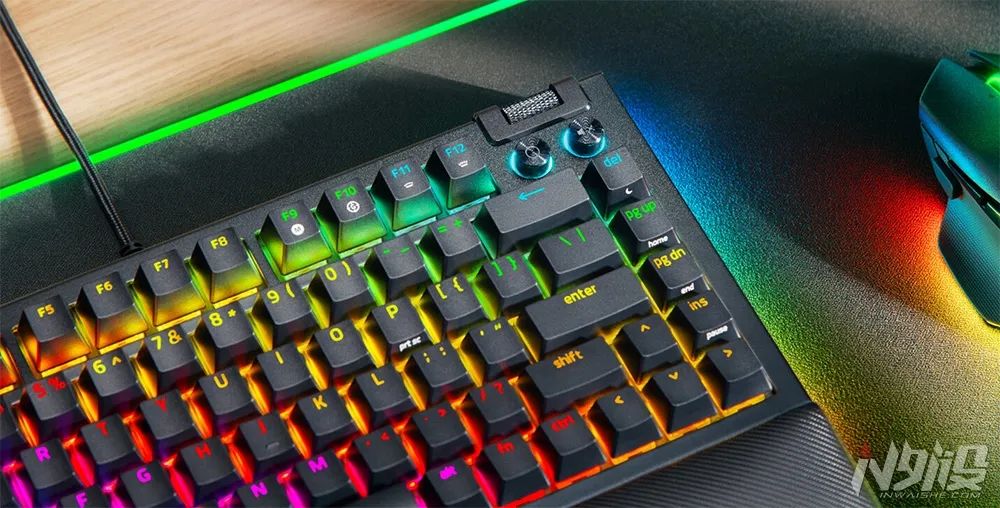 黑寡妇蜘蛛 V4 75% 热插拔版的内核是一款功能丰富的游戏键盘,包括多媒体滚轮和按键,支持高达8000Hz的轮询率,可通过雷云软件编程的按键,双色注塑ABS键帽,N键无冲和防重影技术。