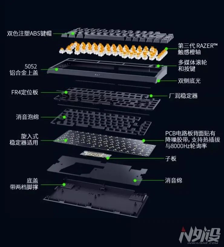 热插拔设计,采用雷蛇全新一代的触感橙轴