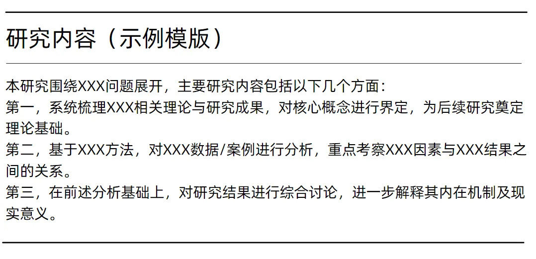 如果你想直接照着写,下面是一套通用型研究内容模版,大家可以参考一下~
