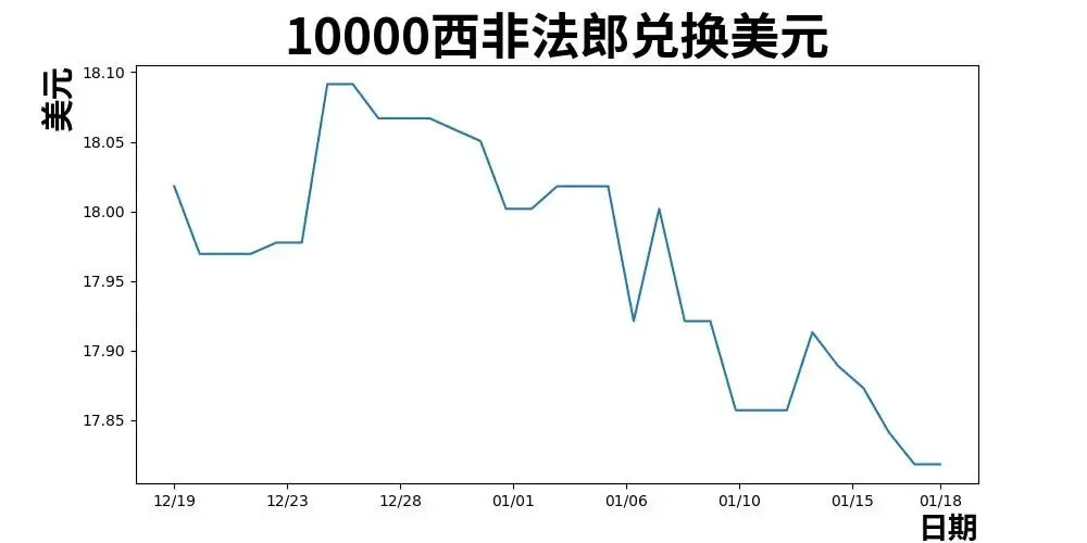 10000 西非法郎 = 17.82 美元