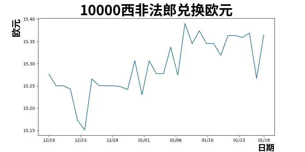 10000 西非法郎 = 15.36 欧元