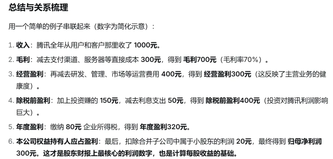 那么收入、毛利、经营盈利、除税前盈利、年度盈利、本公司权益持有人应占盈利区别: