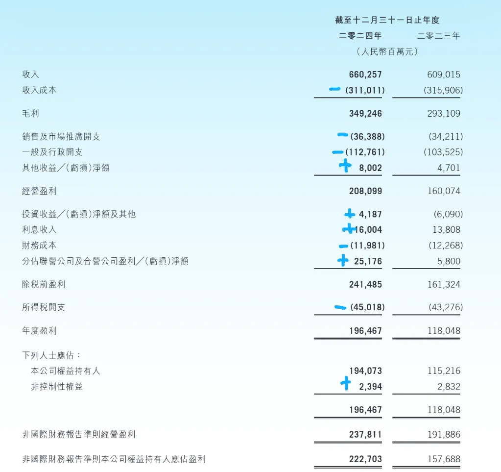 2024年度权益持有人应占盈利,也就是归母净利润,222,703(人民币 百万元),即222,703,000,000,读作2227亿零3百万元。