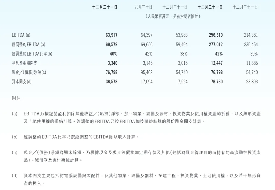 经调整EBITDA:更偏向 “运营现金流” 概念,在息税折旧摊销前基础上调整,未考虑利息、税收和联营公司收益。
