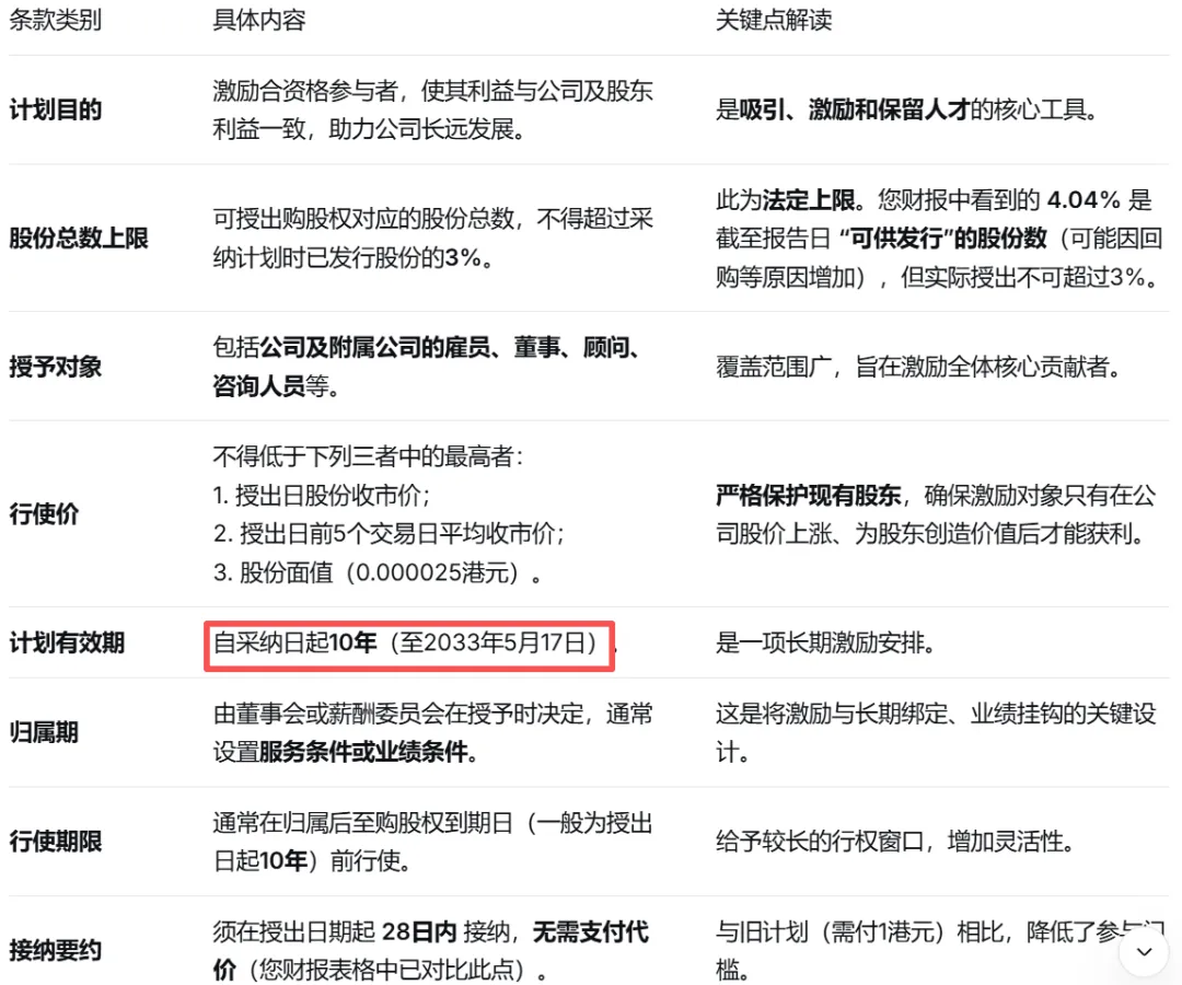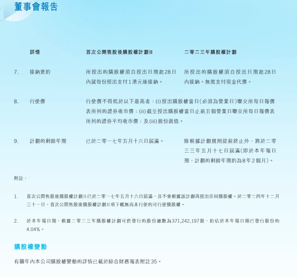 “2023年购股权计划”是腾讯在2023年5月17日的股东周年大会上批准通过的一项长期股权激励工具。该计划是未来潜在股权稀释的主要来源之一。具体情况见下图: