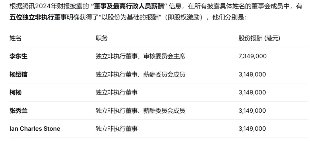 腾讯2024年财报中,公司主要通过 “股份酬金”和“股份奖励计划” 来实现股权激励,这也是“购股权计划”的核心体现。股份酬金总开支人民币207.34亿元,同比增长约 10%,是腾讯最主要的薪酬成本之一。
