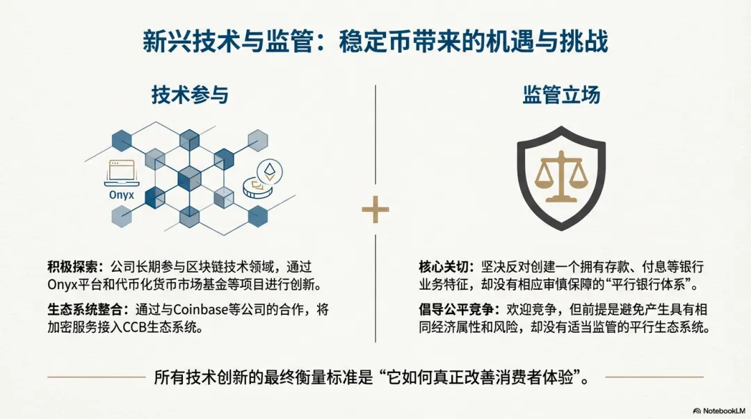当“乐观投入”把摩根大通推向进攻姿态时,第三个关键词“恐惧”则把它拉回防守阵地。会议中,他们用大量篇幅讨论监管风险,尤其聚焦两个问题:稳定币与信用卡 APR 上限。