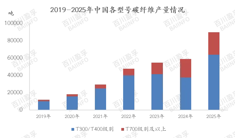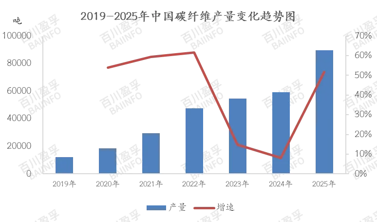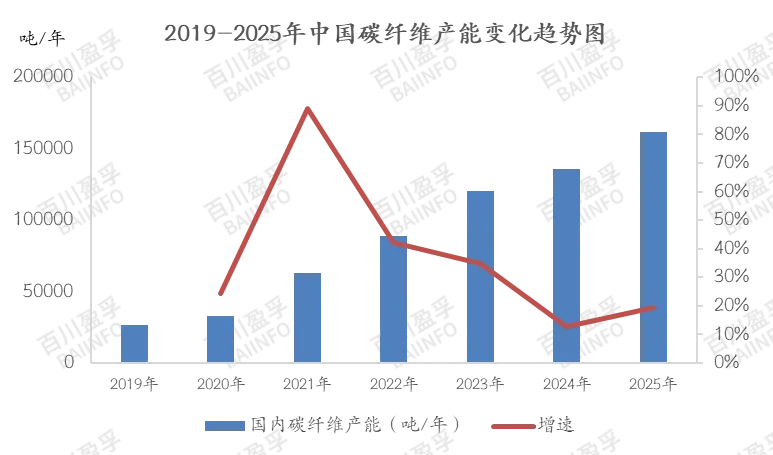 2019-2023年,是中国碳纤维产能的爆发期,五年产能翻近五倍;2024-2025年,国内产能增速减缓,新增投产项目进入冷静期。