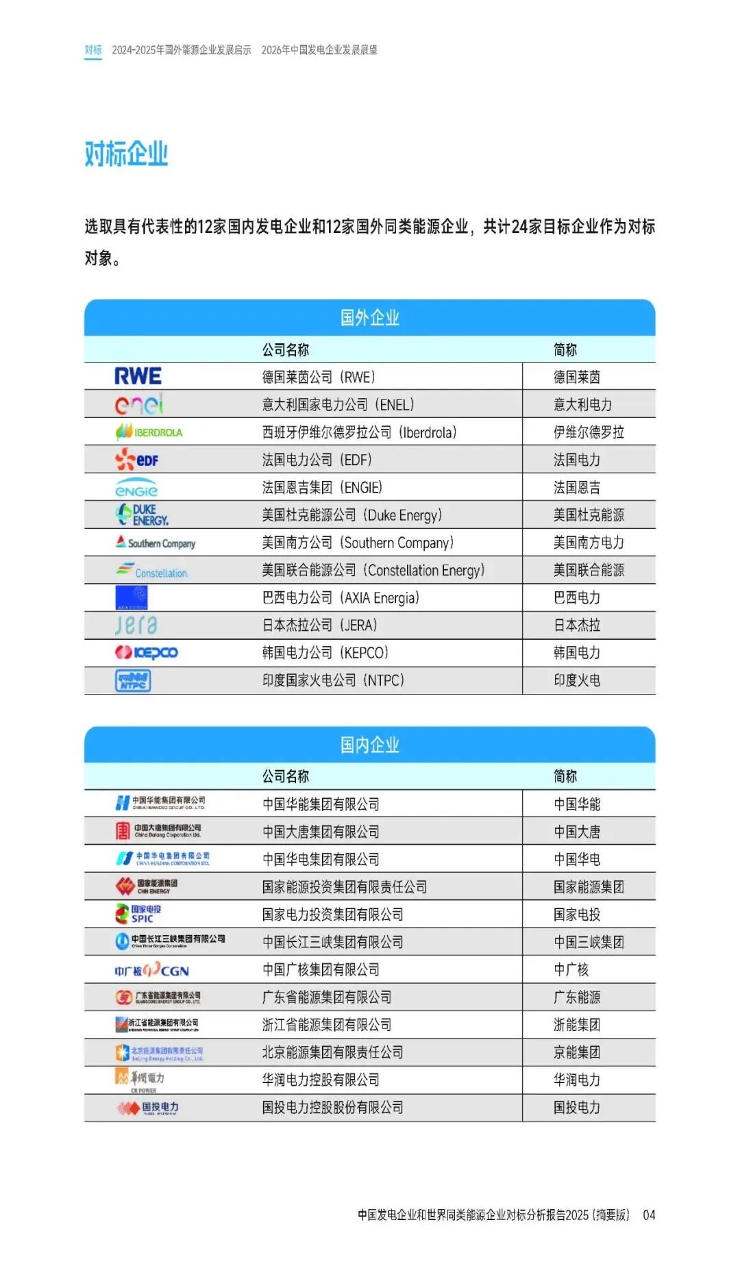 中电联电力发展研究院等发布《中国发电企业与世界同类能源企业对标分析报告2025》(强烈推荐,欢迎转发、扩散,文末附下载链接)