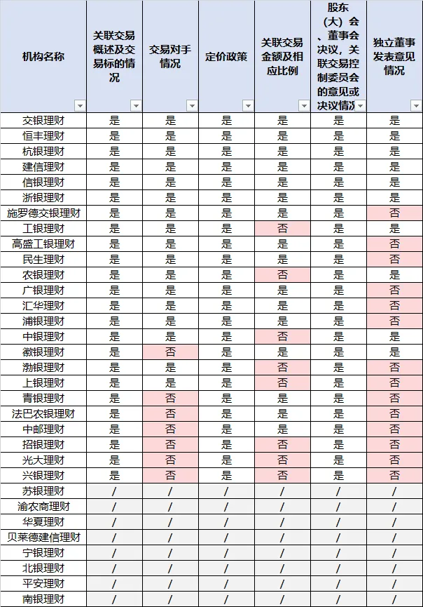 尤其是涉及非标资产关联交易,其实在其他资产管理监管环节都是禁止的,那么对于公募性质的银行理财,本应采取更加谨慎的态度,整个非标资产的推荐、投后管理、或者信托贷款投放、或者助贷等,只要有和关联方沾边,理应采取及其谨慎的态度,最严格的披露标准来处理,最详细的披露规则和字段,防止任何形式的交易价格不公允甚至利益输送。