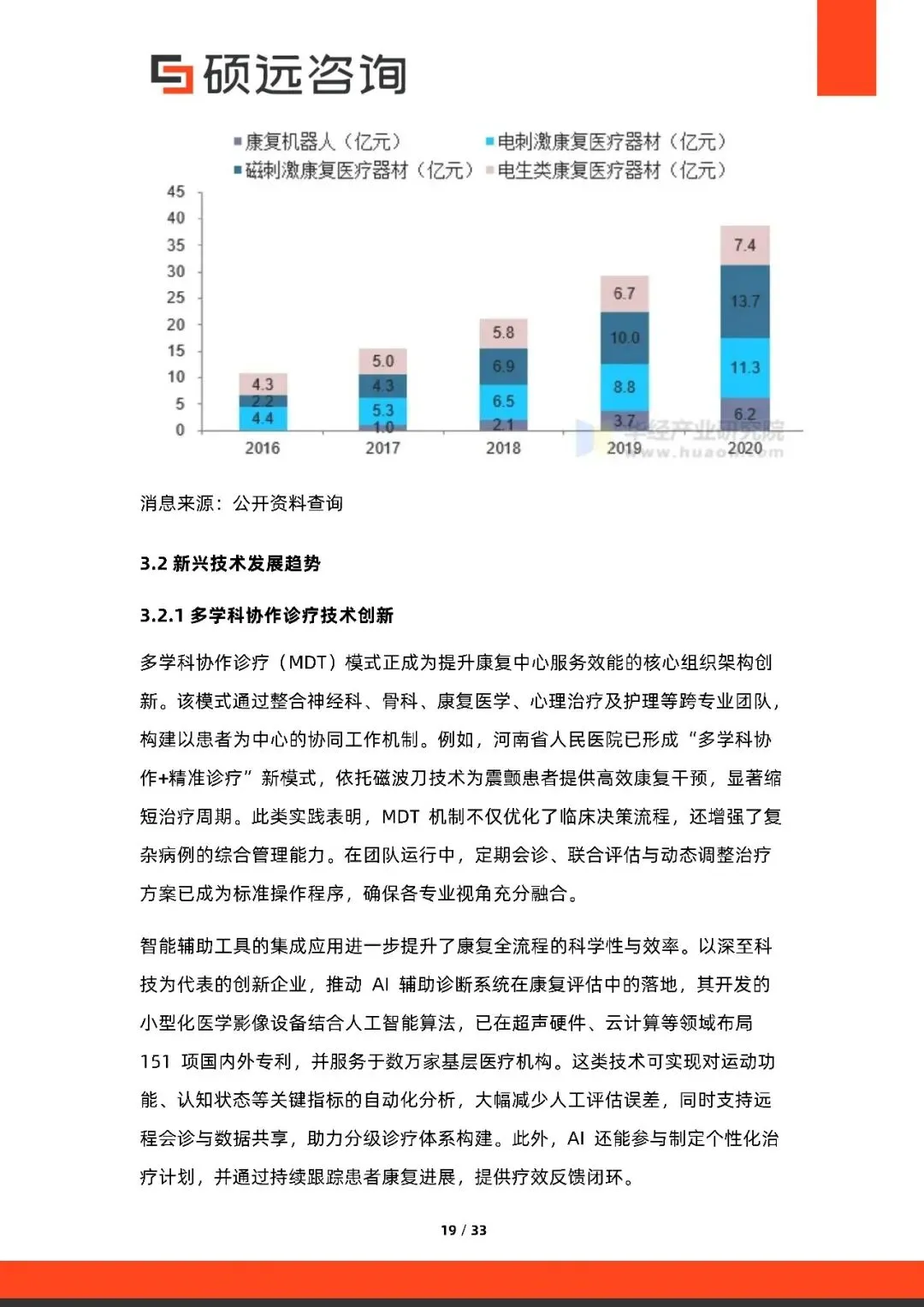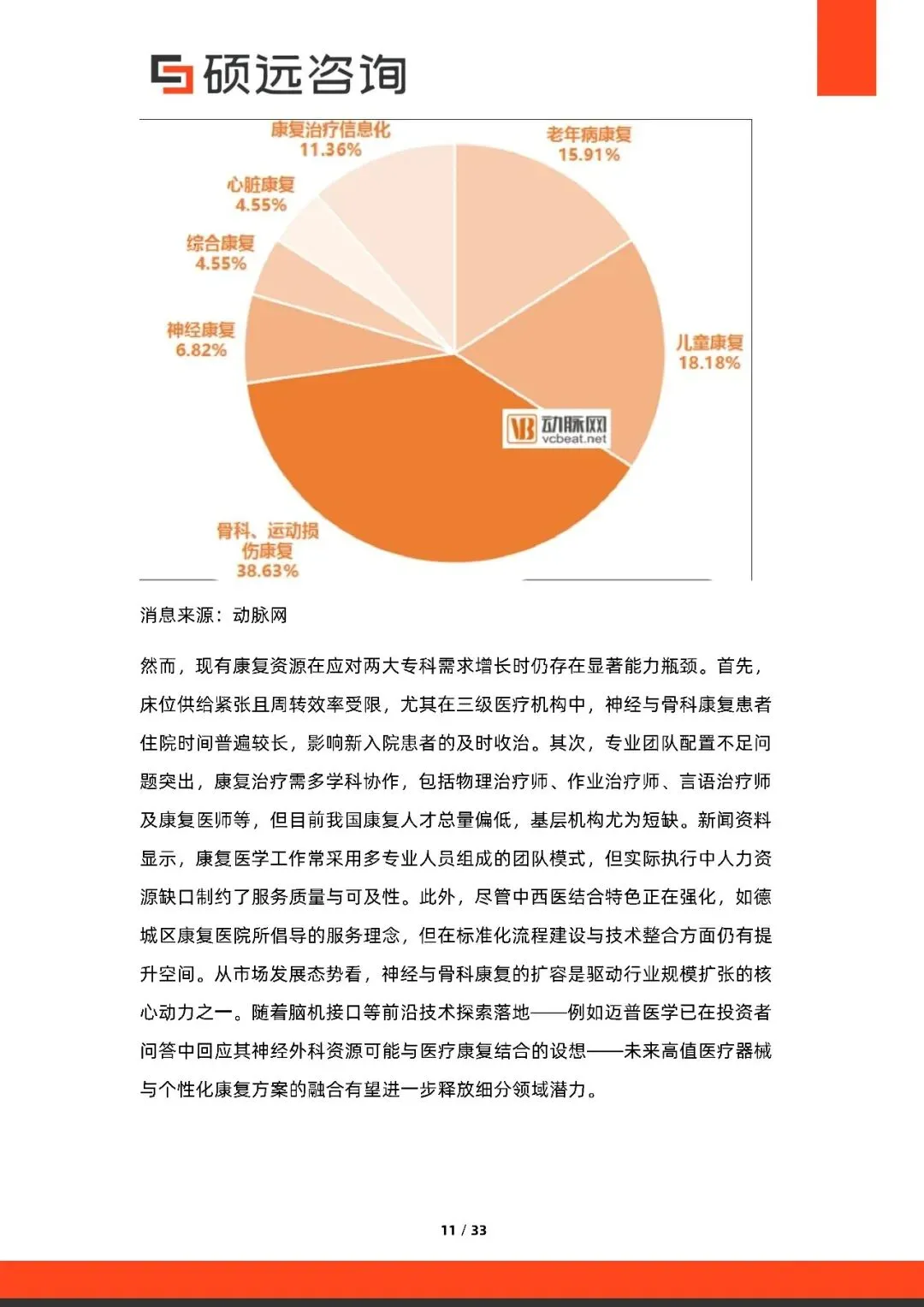 目前中国康复医疗行业市场竞争格局分散,行业CR5为18.63%,目前翔宇医疗占据了最多的市场份额,占比为5.74%,但是从 2018 年以来,虽然面临疫情的压力,康复医疗收入总体稳健增长,行业竞争格局将逐渐集中在主要企业手中。