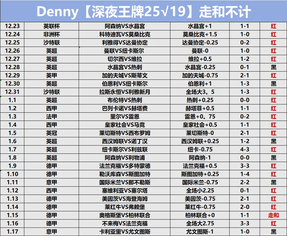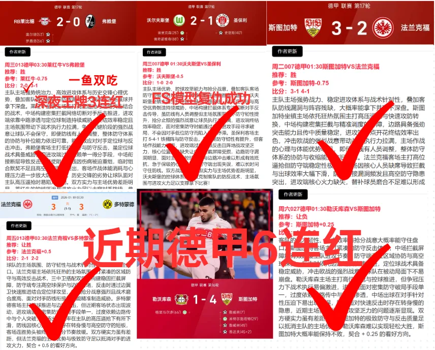 但兄弟们,看事情得看全盘:咱们的无门槛公推,昨天继续稳稳拿下。这说明什么?说明咱们的基础研判框架是稳的,地基没塌。最近咱的德甲战役的6连红,也是实实在在走过来的!We’ve clinched six straight wins in our recent Bundesliga picks, and every single one was earned fair and square!