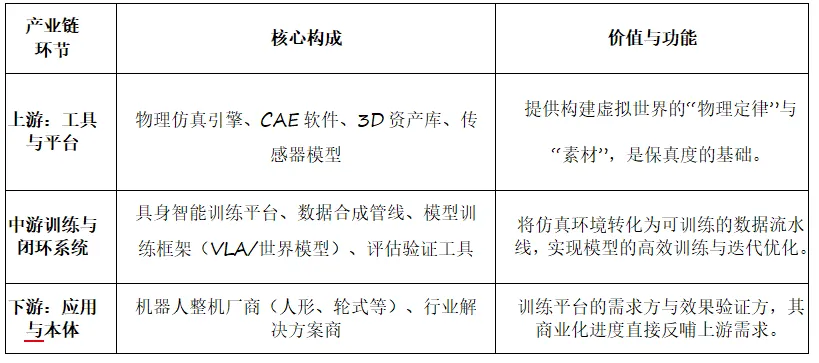 投资应聚焦“核心产业链、核心环节、核心场景”。仿真训练与数据闭环领域的标的可分为三类: