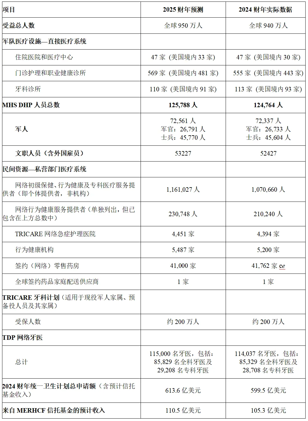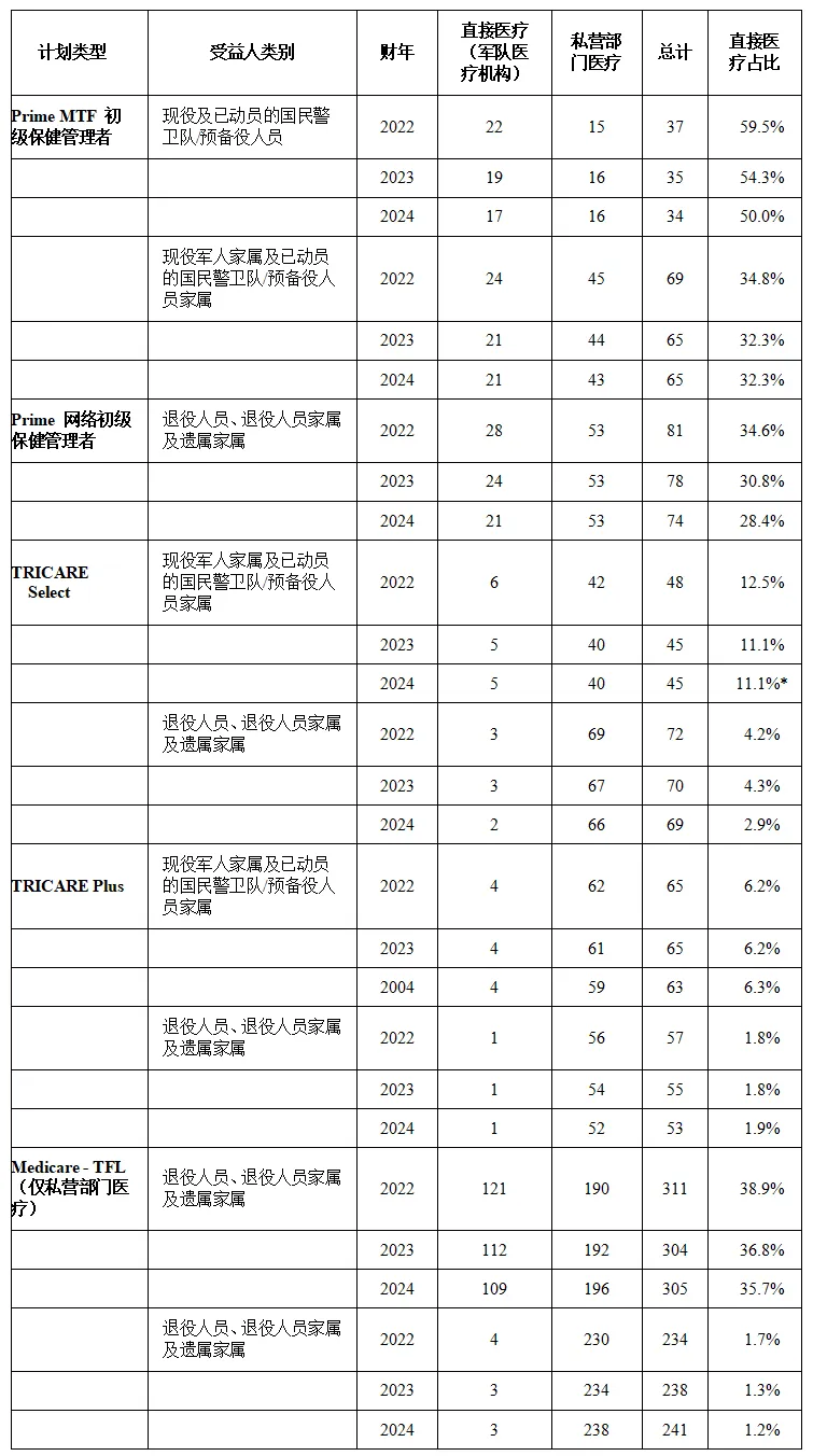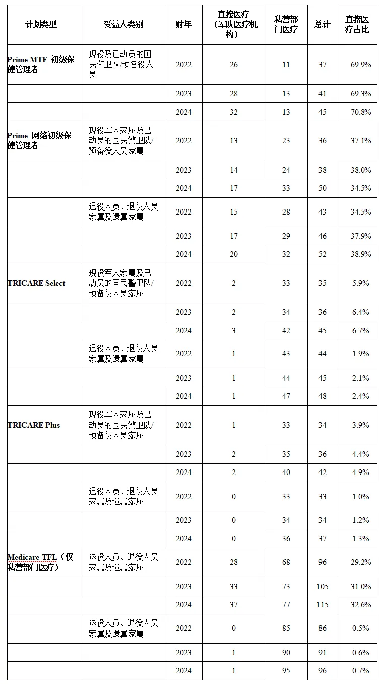 直接医疗服务(军队医疗机构) 私营部门医疗服务(合同资源管理局) 卫生资源管理与政策办公室 符合医保资格的退休人员医疗保健基金(MERHCF)