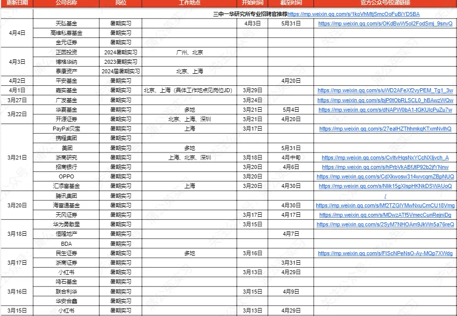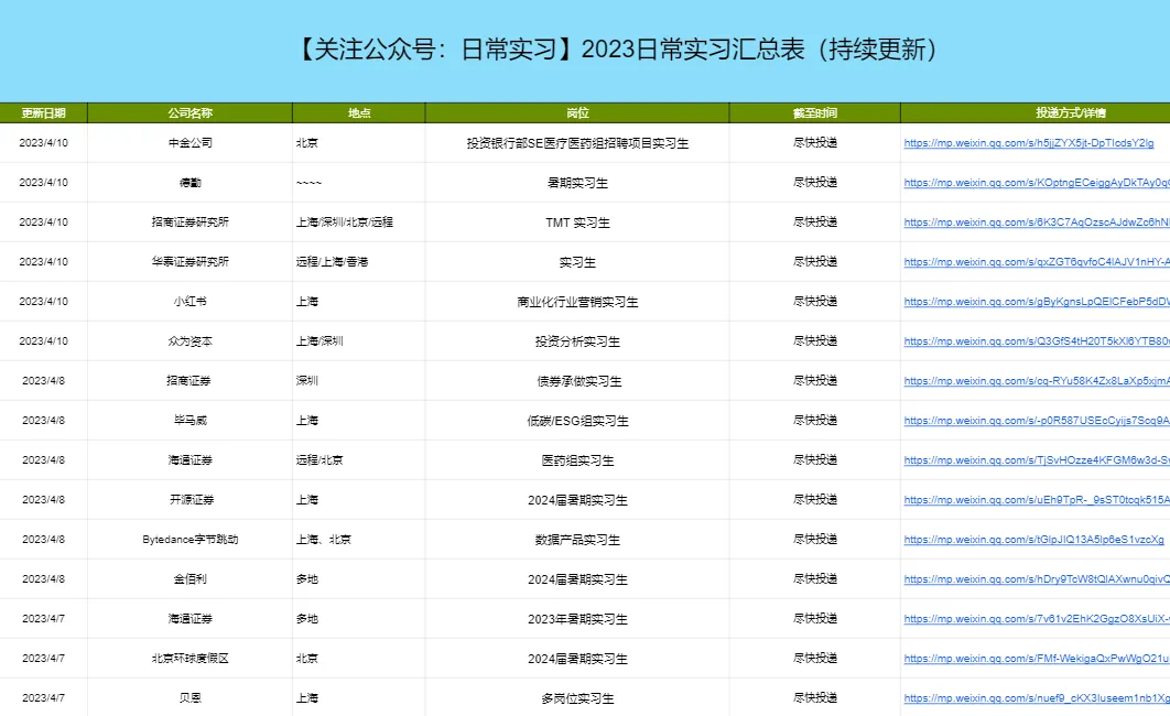 旨在为大家提供最新的实习信息
