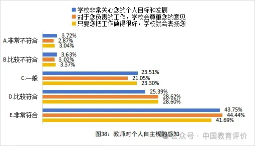 感知到学校尊重其所负责工作的意见的(“比较符合”+“非常符合”)占73.06%,数据反映出教师感知自己负责的工作受到制约,自主权有待进一步提升。