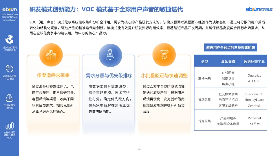- 不再闭门造车,而是通过VOC(用户声音)四种模式,快速响应全球市场需求。