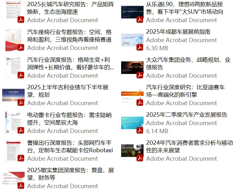 废话不多说,今天小编给大家分享4880份汽车产业顶级报告,包含:智能网联、新能源、共享出行、区块链、后市场以及传统汽车产业…...你想要的汽车产业报告都在这里了!(如欲获取以上报告完整版PDF文件,请扫描下方二维码加入“车友圈”获取。)