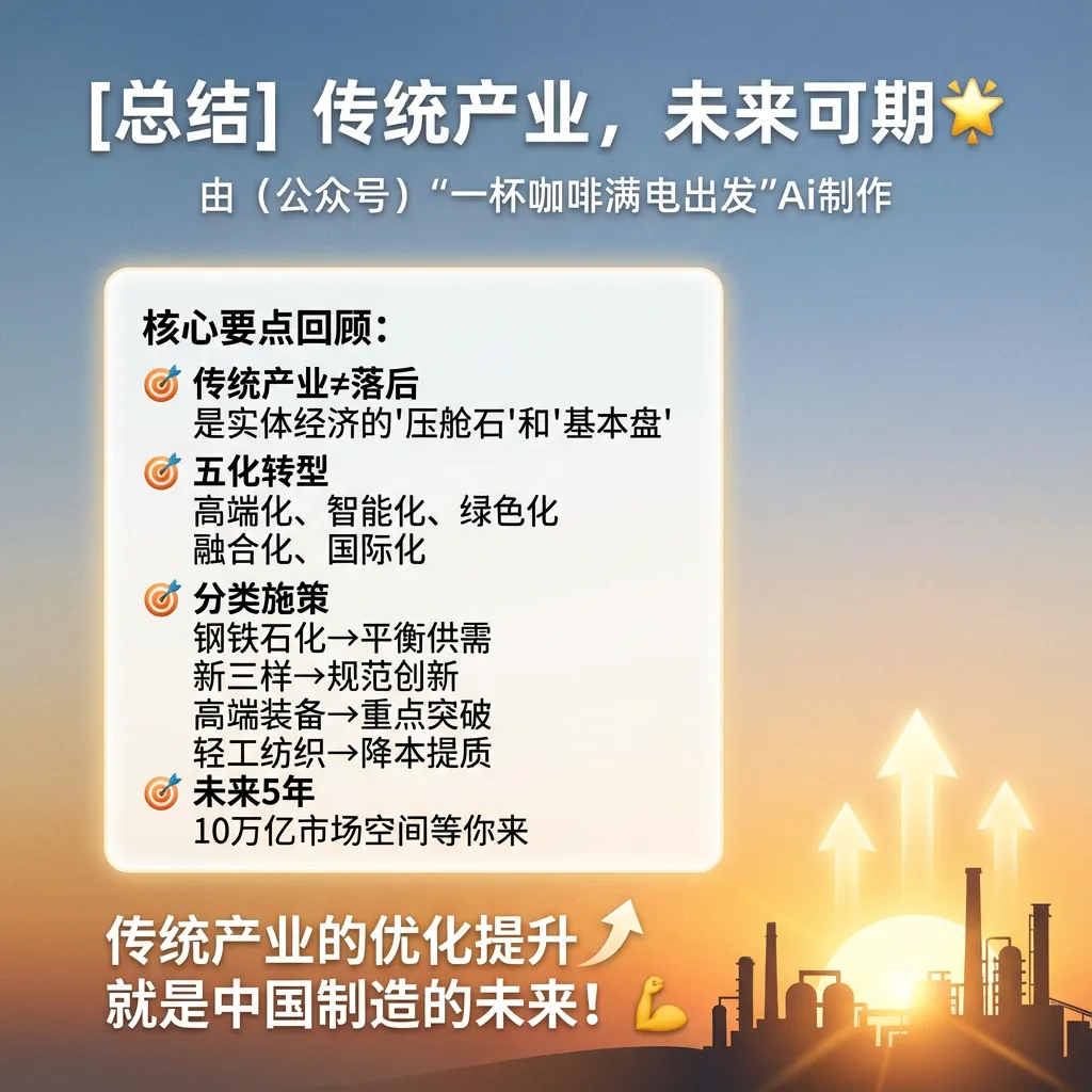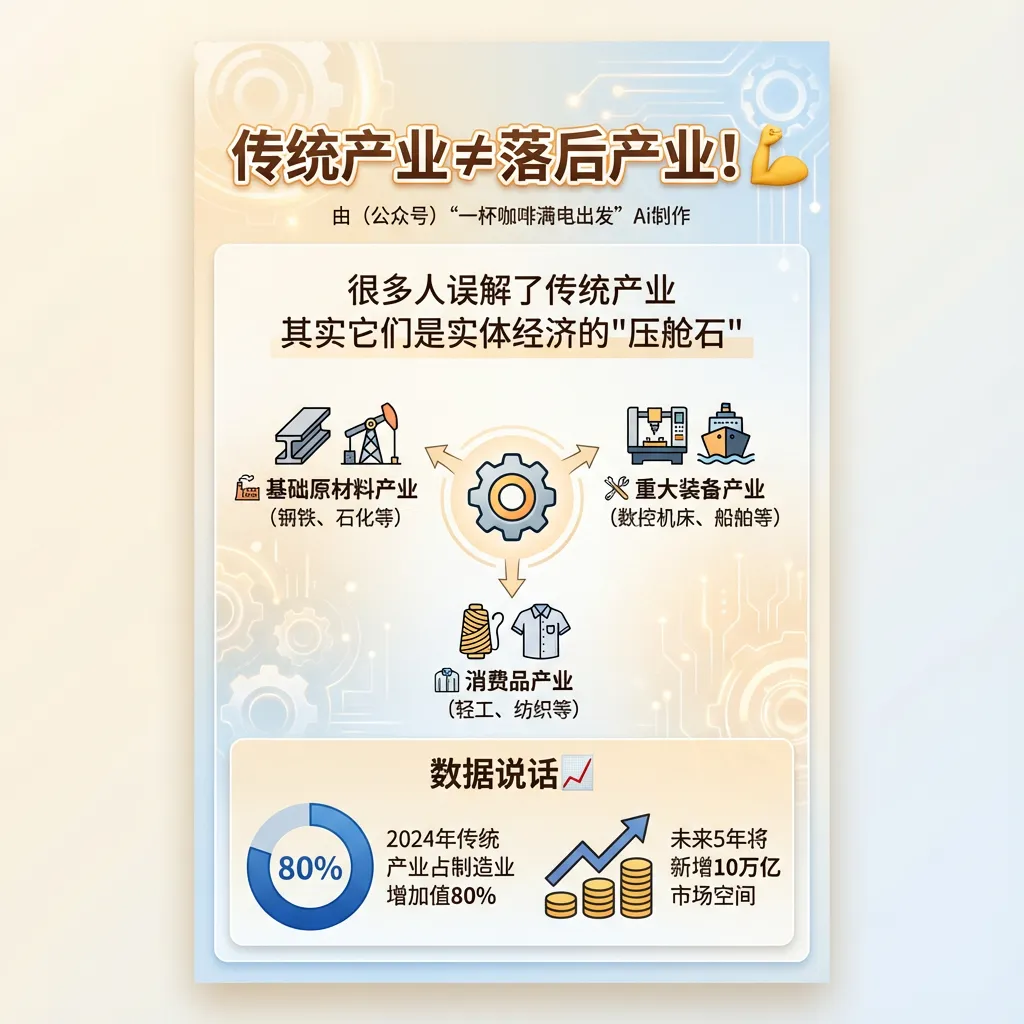 传统产业既包括国民经济发展必需的重要基础原材料产业和重大装备产业,也包括满足人们生活需要的消费品产业,是实体经济的重要组成,是我国现代化产业体系的基底。党的二十届四中全会通过的《建议》提出“建设现代化产业体系,巩固壮大实体经济根基”,把“优化提升传统产业”放在更加突出位置,这是以习近平同志为核心的党中央作出的重大部署。我们要深刻学习领会,系统总结“十四五”时期传统产业发展成绩,把准“十五五”时期传统产业优化提升的目标和工作着力点,持续深入抓好贯彻落实。