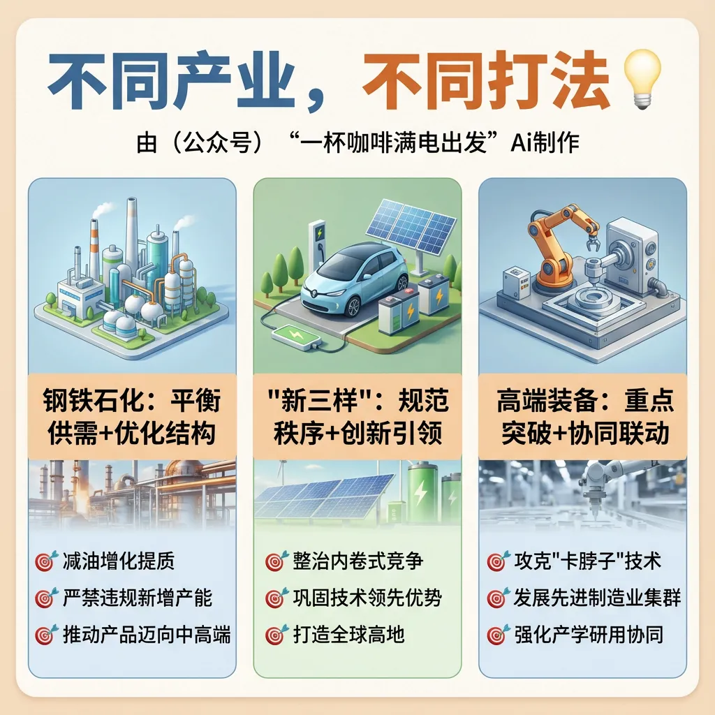 对新能源汽车、锂电池、光伏等“新三样”产业,关键在于规范秩序、创新引领。“新三样”产业是我国在激烈市场竞争下培育出的优势产业,是我国外贸高质量发展的新引擎,在全球绿色产业变革中彰显了中国力量,但也面临市场竞争失序、核心优势还不牢固等问题挑战。“十五五”时期,要综合整治“内卷式”竞争,维护公平竞争环境,提高行业集中度,打造全球技术领先高地。规范市场竞争秩序,深入实施公平竞争审查制度,加强价格监测、质量检查,防止低价无序竞争。加强供应链治理,保障中小企业款项支付,营造行业互利共赢良好生态。加大技术创新力度,巩固技术领先优势。加强宏观调控,坚持用市场化、法治化手段推动落后低效产能退出。强化行业自律,发挥行业协会作用,引导企业培育差异化竞争优势,弘扬企业家精神。