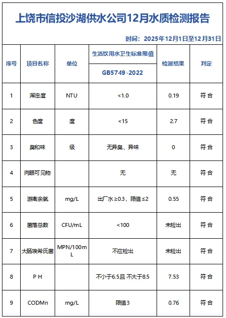 信投水务公司12月水质报告