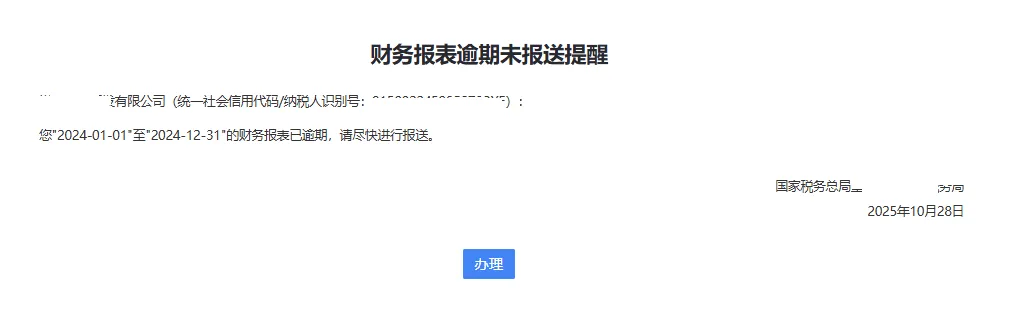 若已发生逾期,需立即采取补救措施:第一时间补报完整财务报表,向税务机关提交书面情况说明,说明逾期原因并承诺整改;留存补报回执、沟通记录等证据,避免被重复追责;定期复盘财务流程,通过智能财务工具设置申报倒计时提醒,明确岗位职责,从源头杜绝逾期风险。