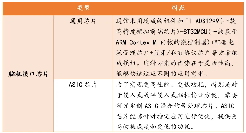 表1.脑机接口芯片类型及特点