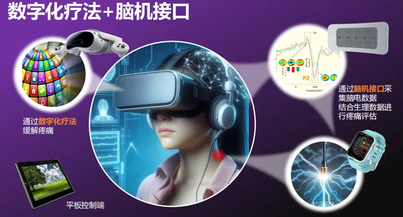 2020-2022年期间,上海交通大学马柯教授团队开展了大规模临床研究,基于高密度脑电图(EEG)技术开发了疼痛评估算法,并通过虚拟现实(VR)和混合现实(MR)技术提供放松训练和认知行为干预,帮助患者调整疼痛感知,重塑大脑功能。该研究团队完成了数千例患者的临床验证,效果显著,为非植入式脑机接口在疼痛管理中的应用提供了坚实证据。