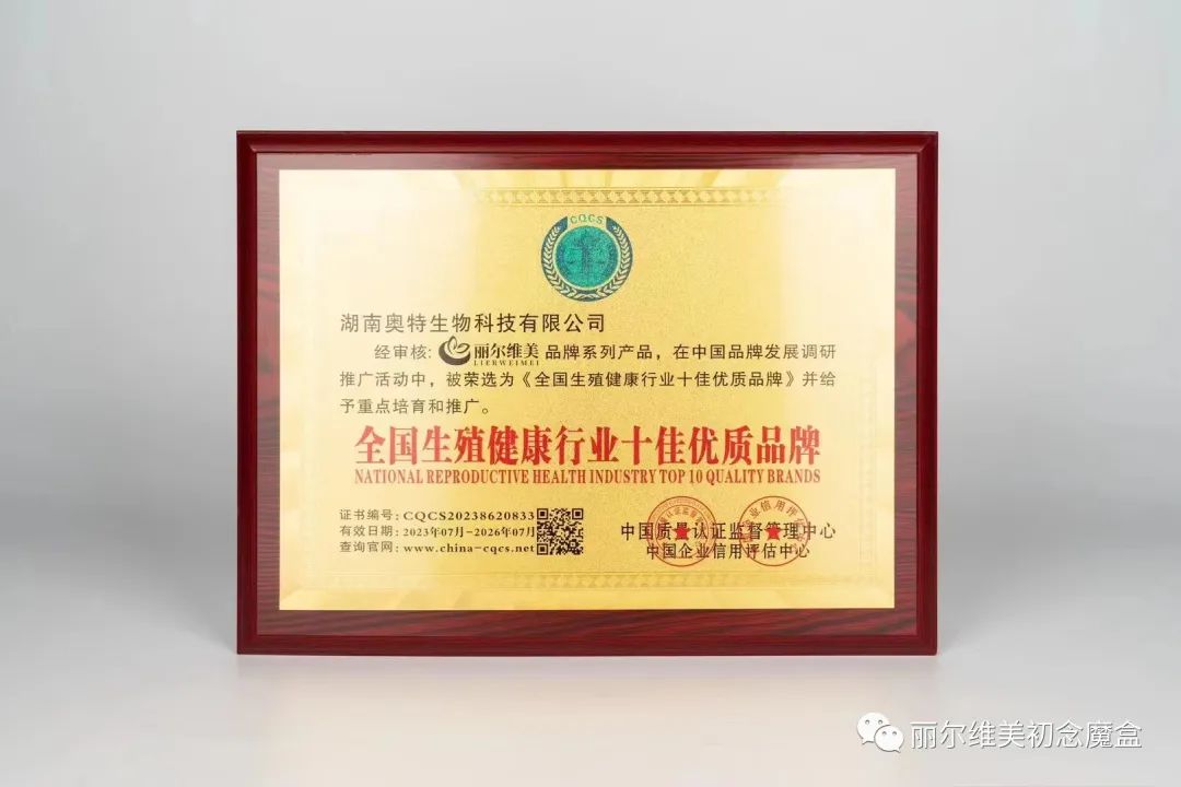 丽尔维美始终从爱出发,获《全国生殖健康行业十佳优质品牌》