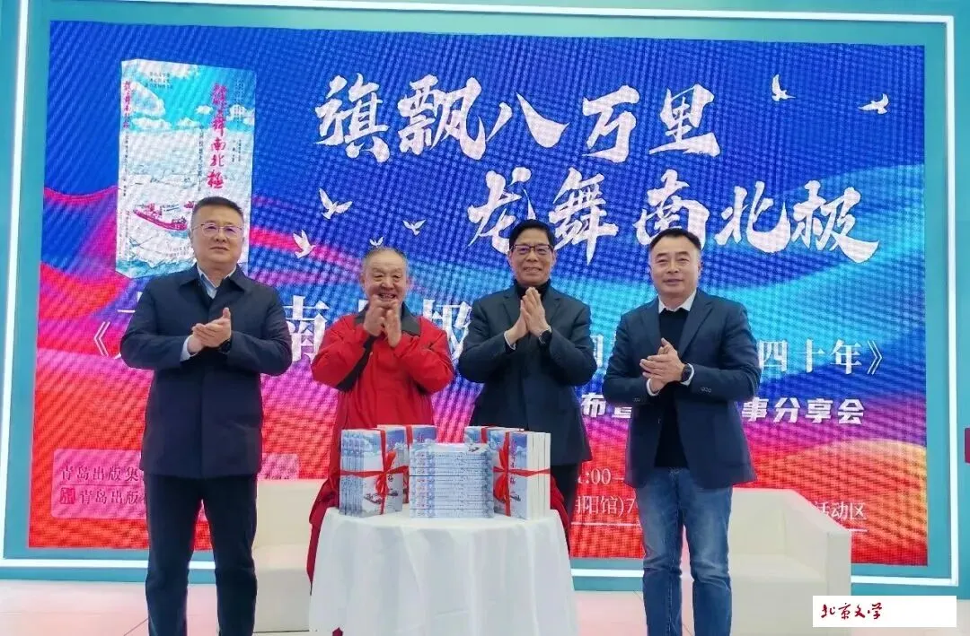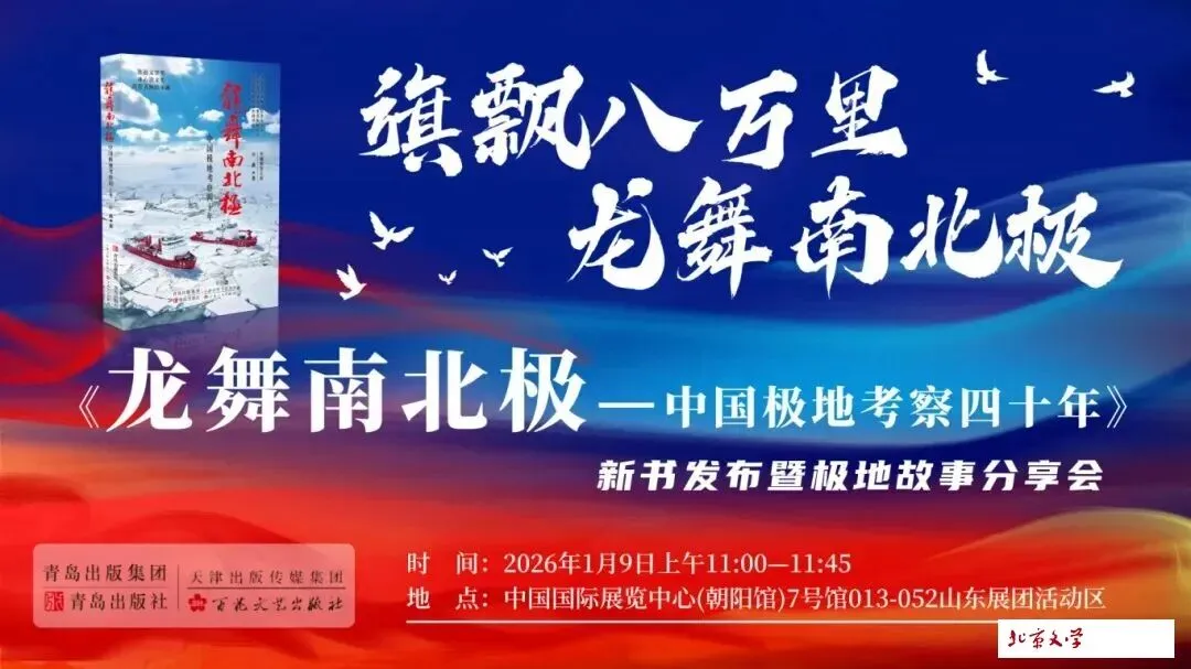 2026年1月9日上午,在第38届北京图书订货会现场,长篇报告文学《龙舞南北极——中国极地考察四十年》新书发布暨极地故事分享会隆重举行。这部由鲁迅文学奖获得者、著名作家许晨历经数年精心采写、青岛出版社与百花文艺出版社联合出版的作品,首度以全景式文学笔法,再现中国极地考察事业四十年的壮丽史诗。