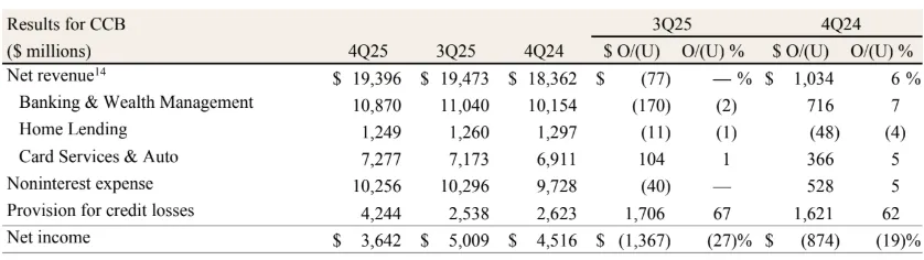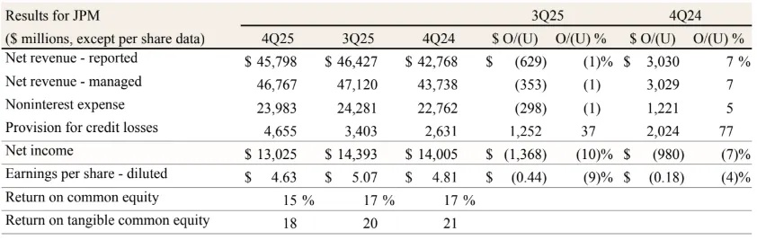 数据来源:以下分析基于摩根大通 2025 年 Q4 财报数据(截止 2025 年 12 月 31 日)。