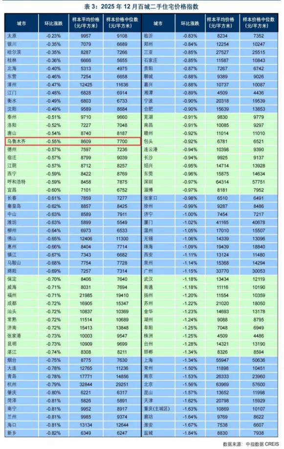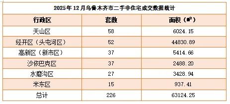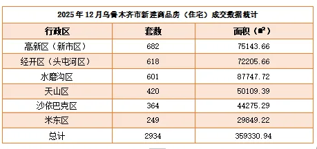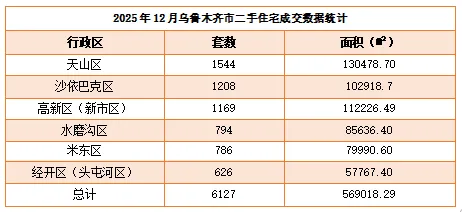 3、 2025年12月乌鲁木齐市房地产交易市场