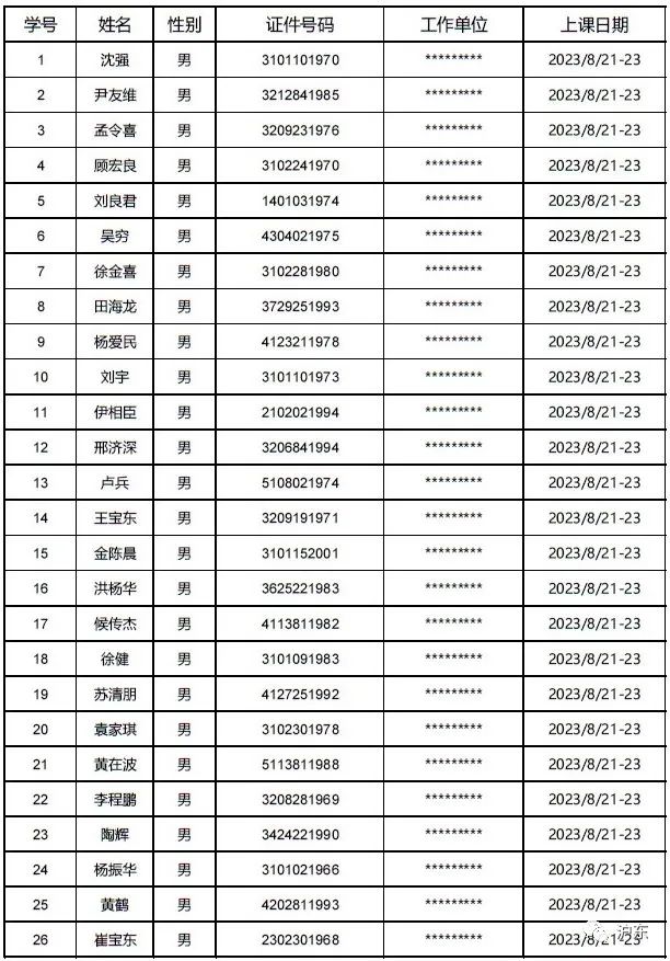 2023年08月21日-23日低压电工线下上课名单通知